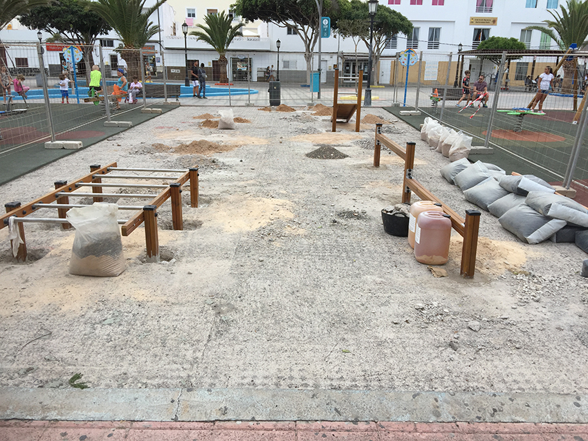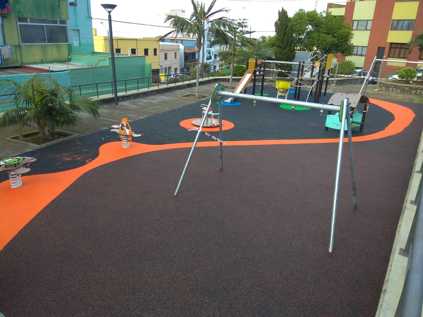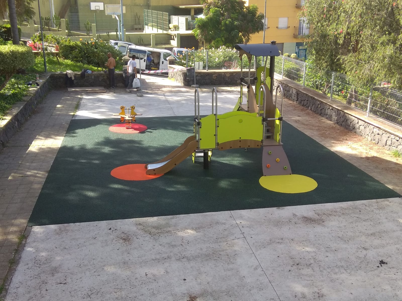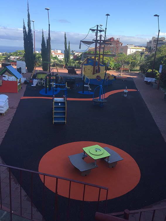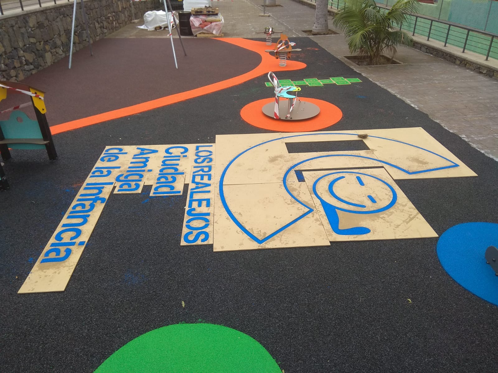 Una de nuestras especialidades es la colocación de pavimento amortiguador tanto en losetas como en pavimento continuo, siempre cumpliendo con la normativa vigente en (UNE-EN 1176-7:2008).