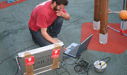 Estamos en continua investigación para mejorar los pavimentos sintéticos. Nuestro trabajo no se limita a la instalación y mantenimiento del suelo amortiguador: nos aseguramos que nuestros suelos cumplen con la normativa UNE-EN 1177:2008 y para ello se realizan los test de absorción de impactos.