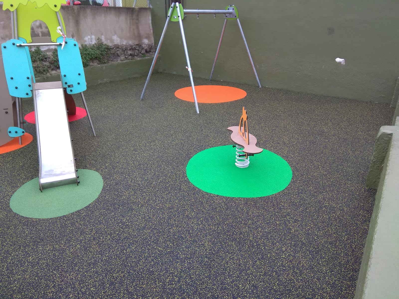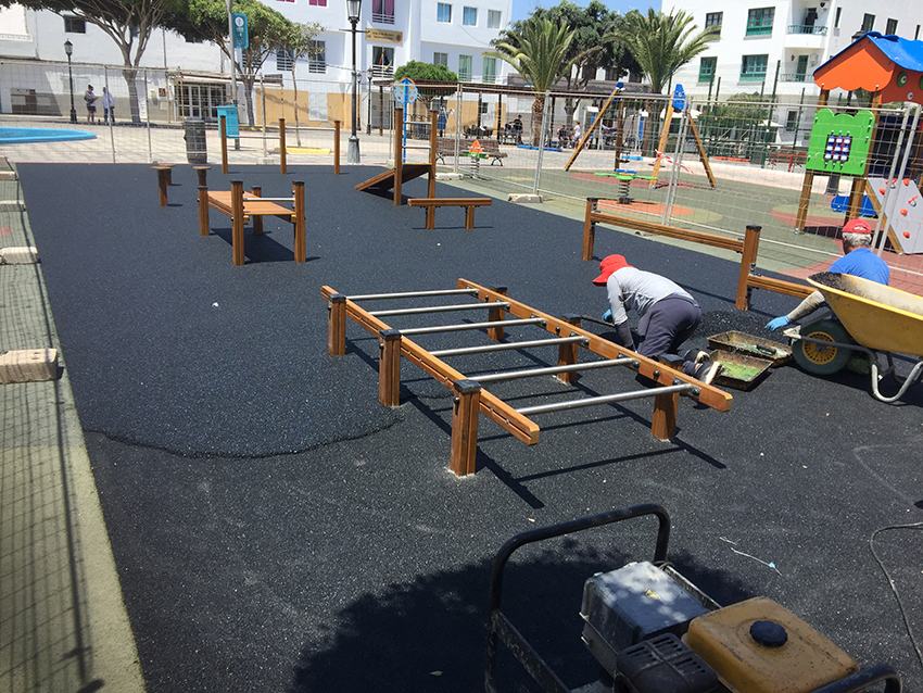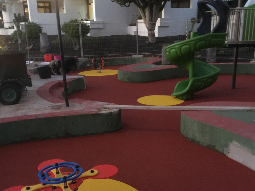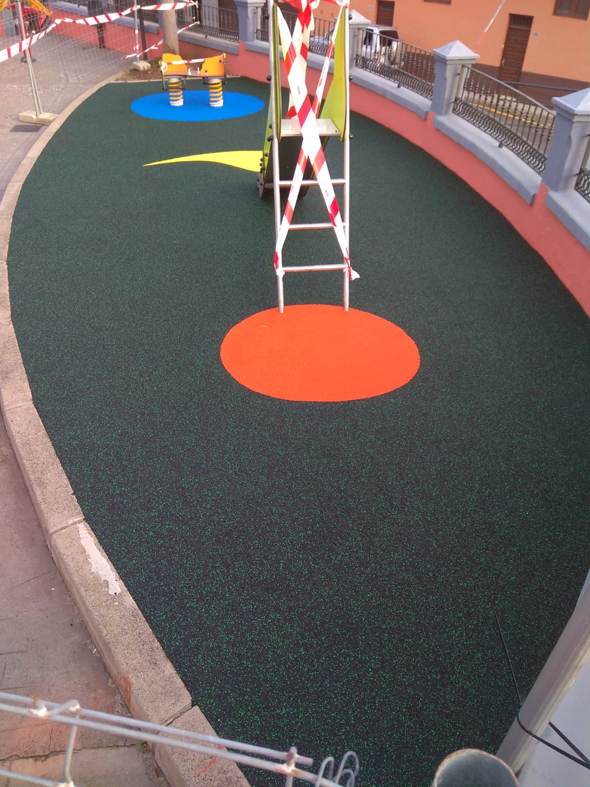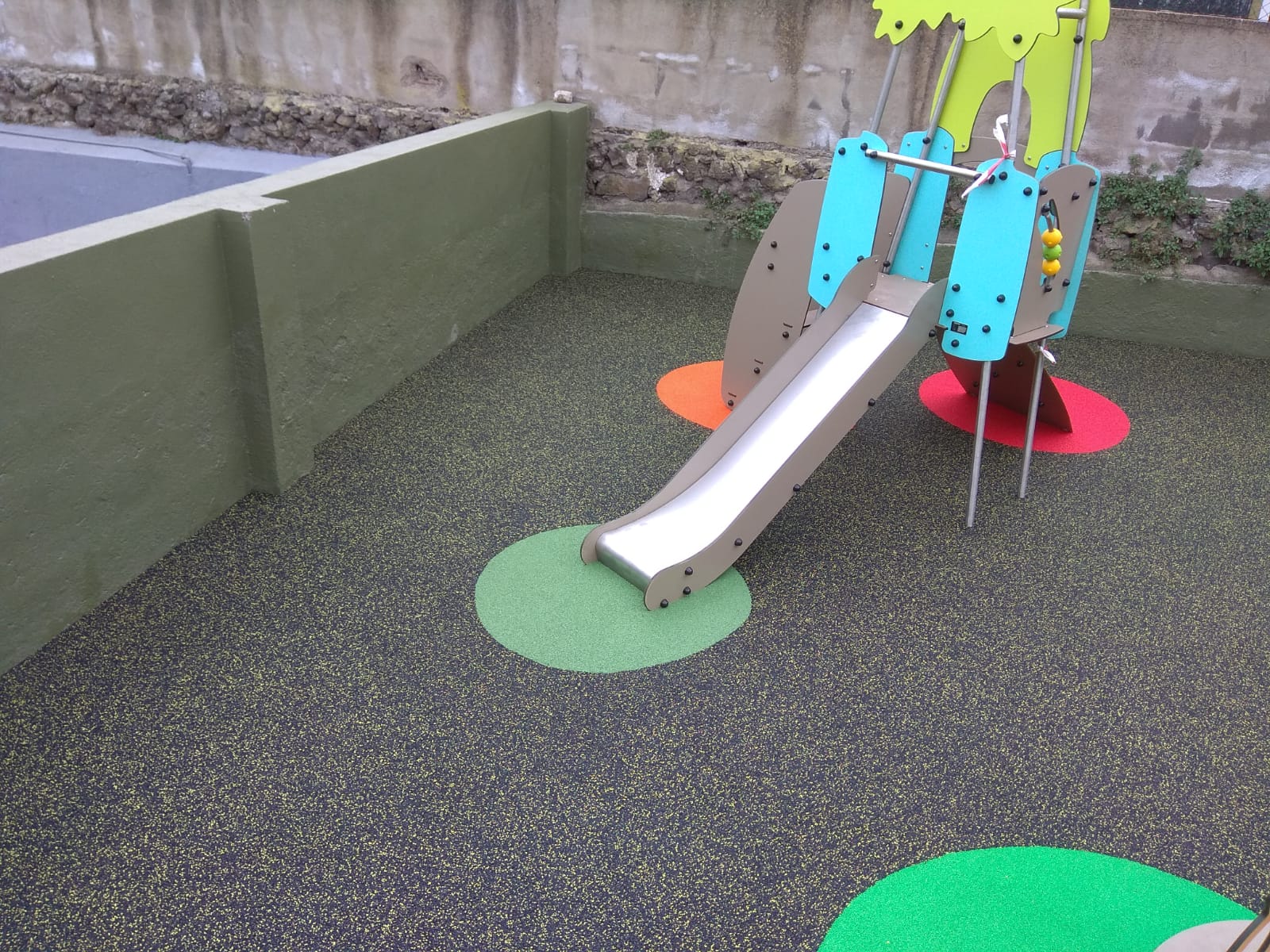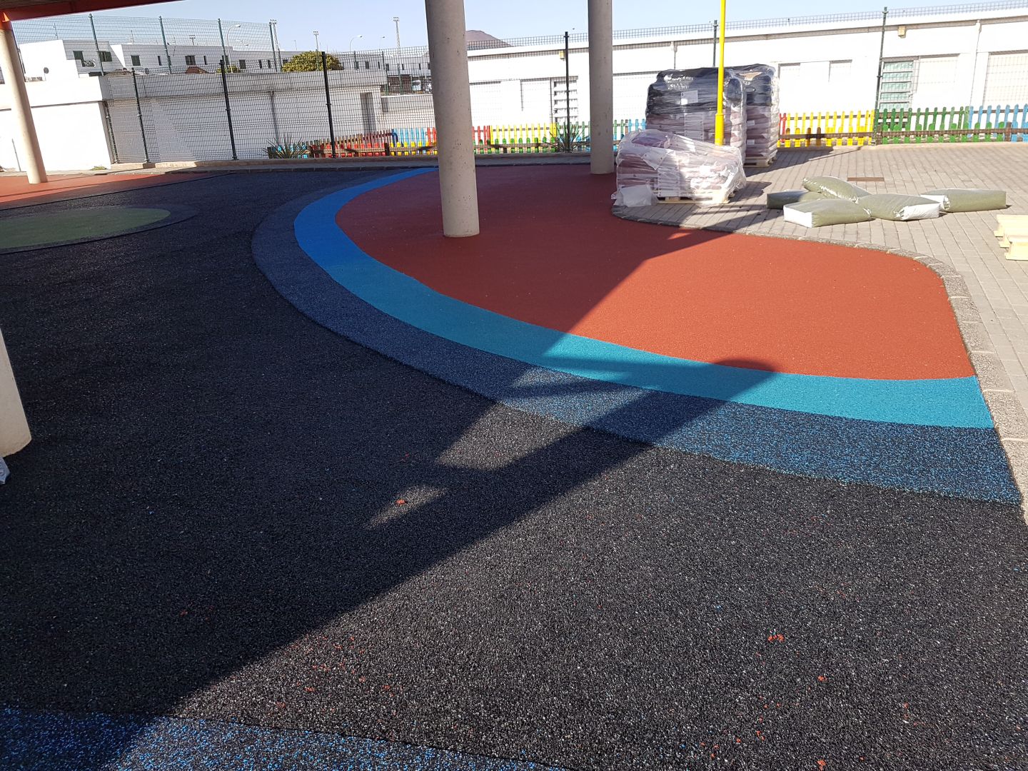 Una de nuestras especialidades es la colocación de pavimento amortiguador tanto en losetas como en pavimento continuo, siempre cumpliendo con la normativa vigente en (UNE-EN 1176-7:2008).