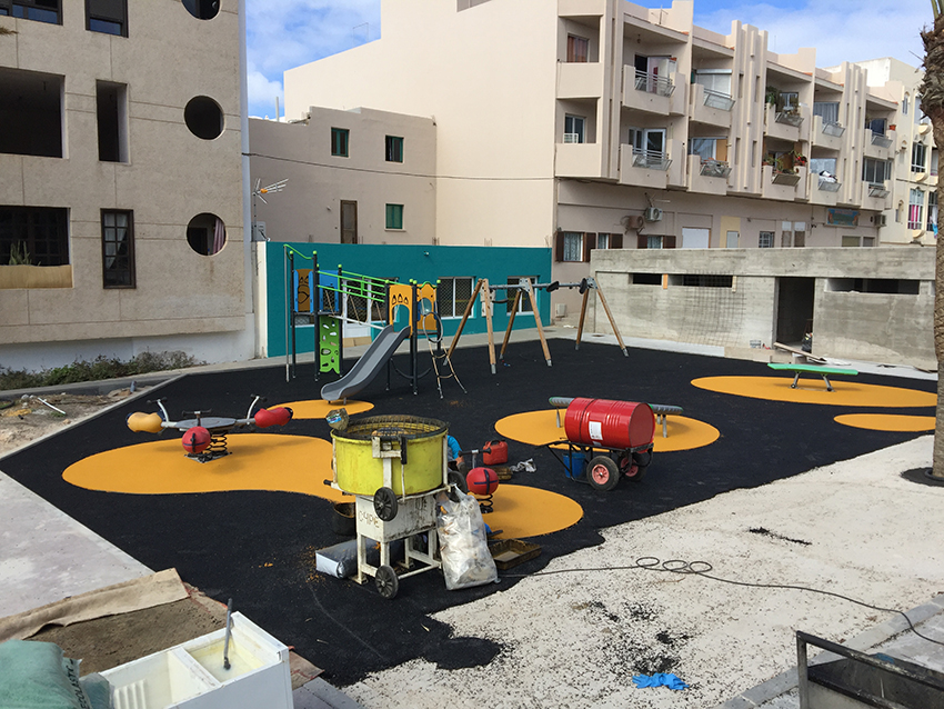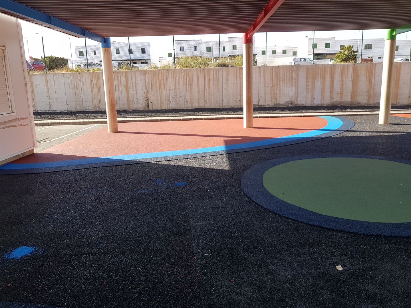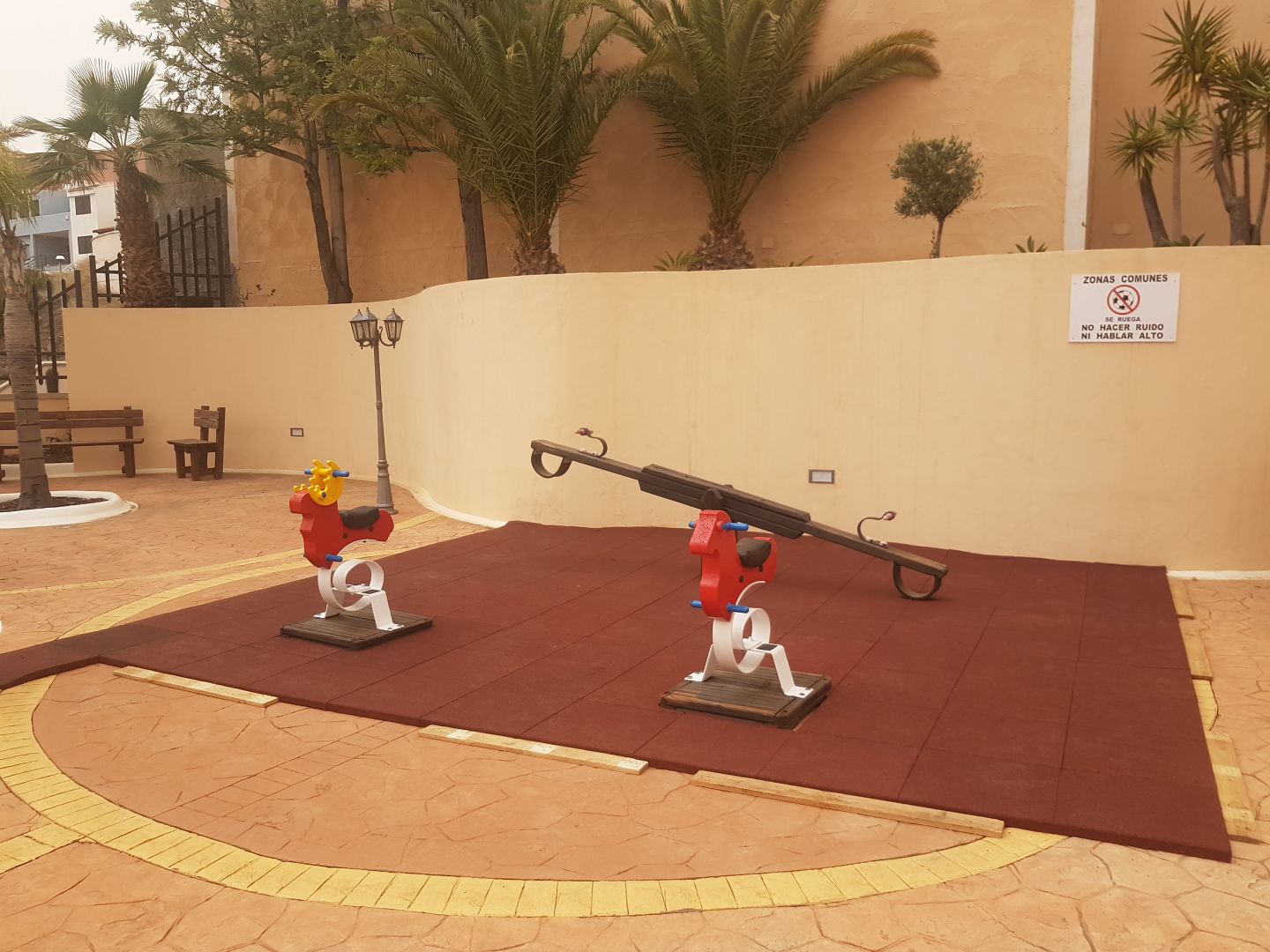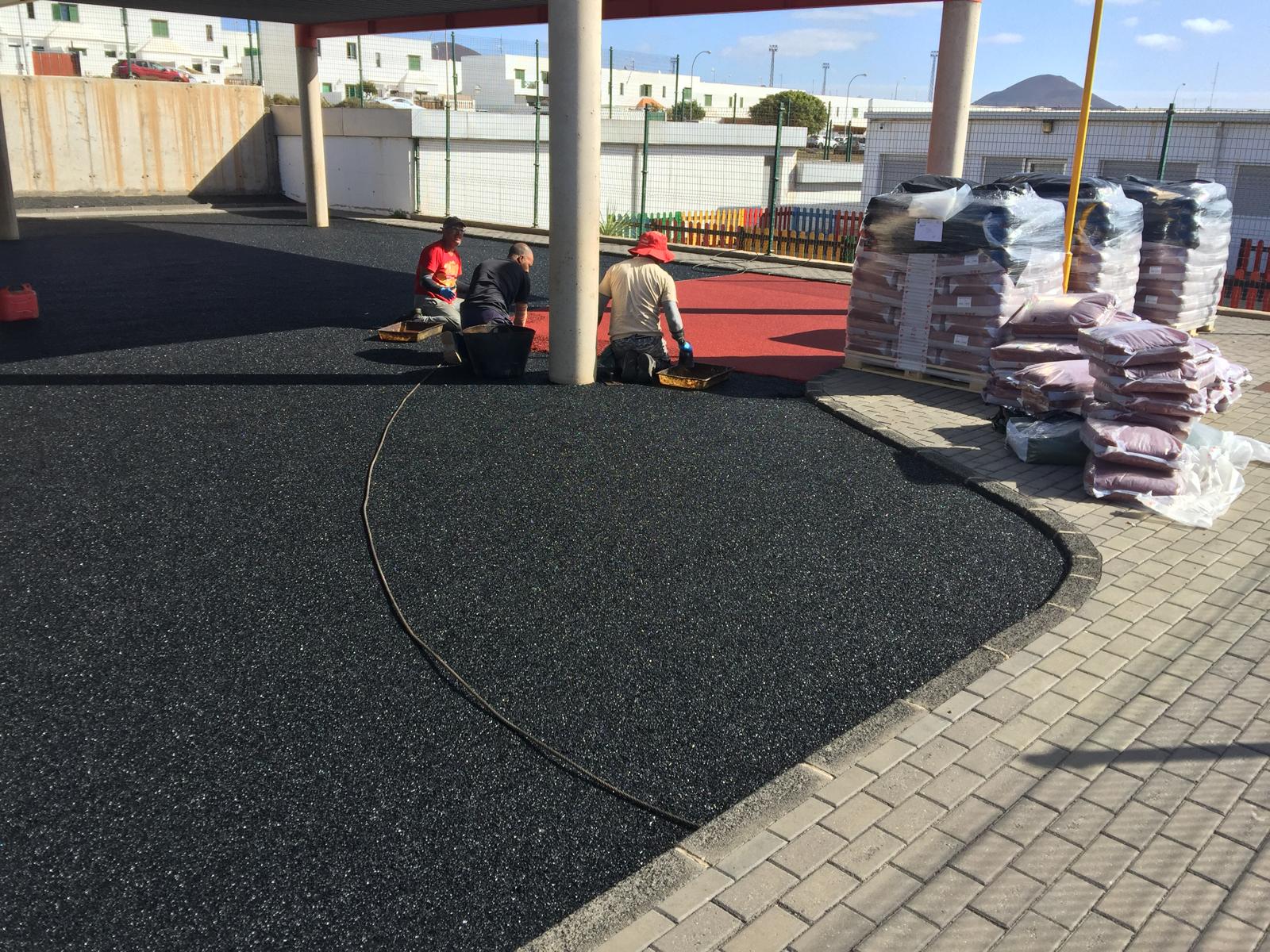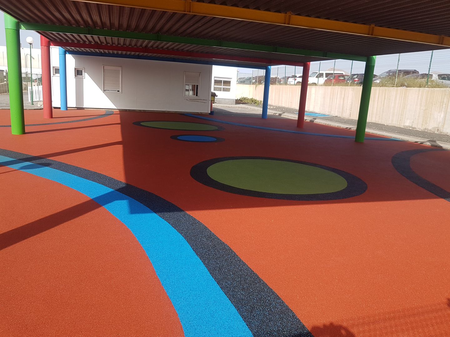 Una de nuestras especialidades es la colocación de pavimento amortiguador tanto en losetas como en pavimento continuo, siempre cumpliendo con la normativa vigente en (UNE-EN 1176-7:2008).