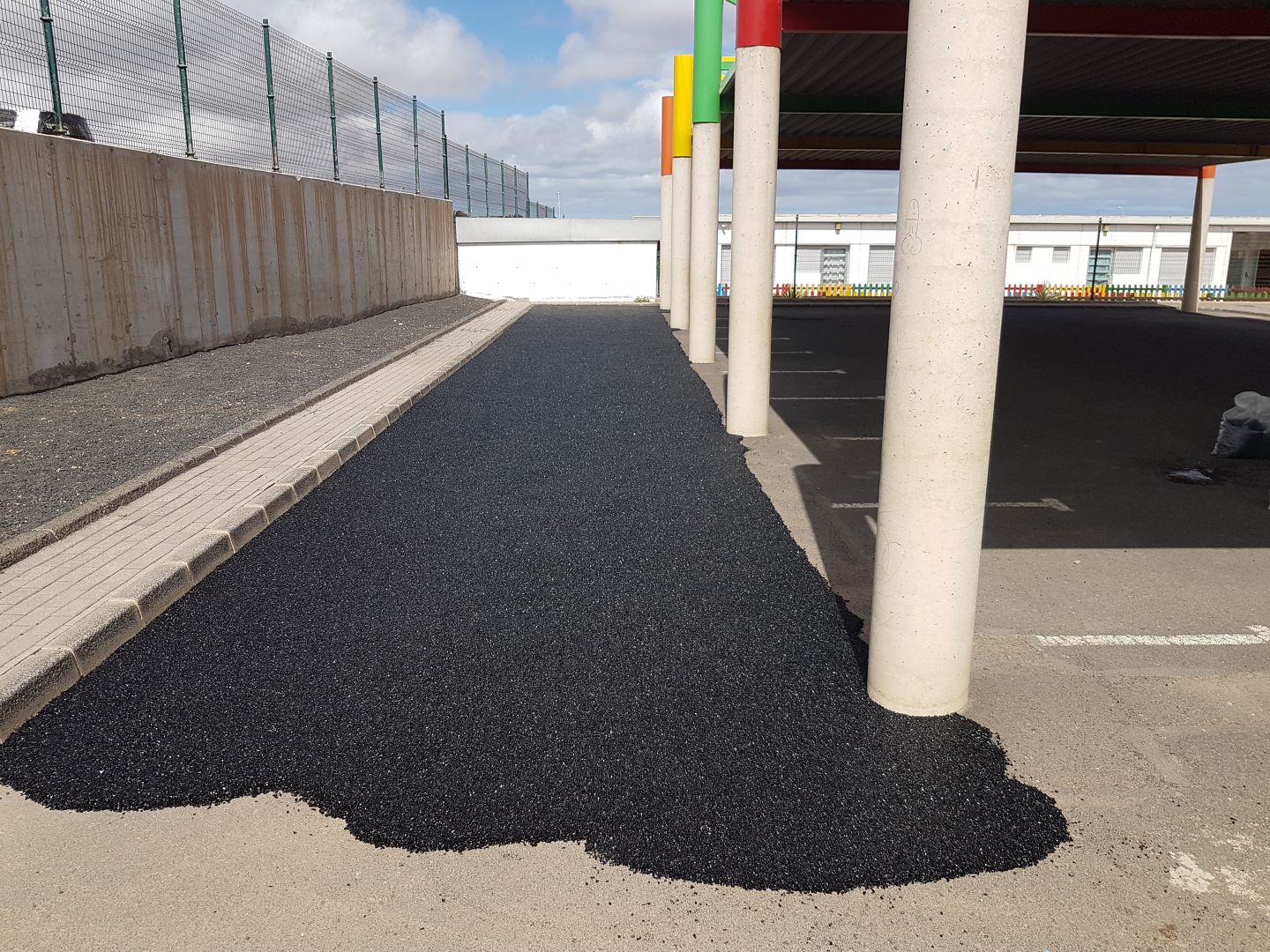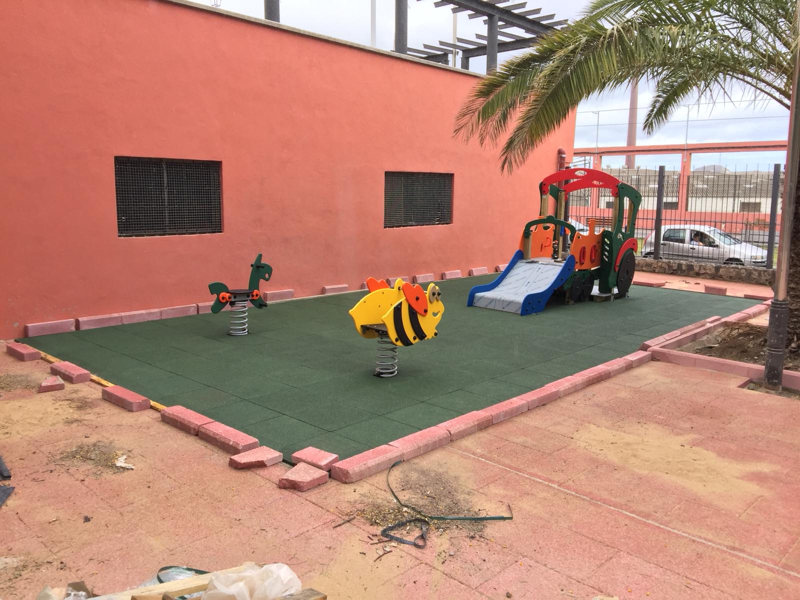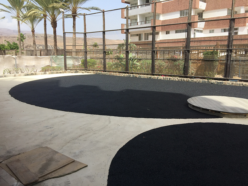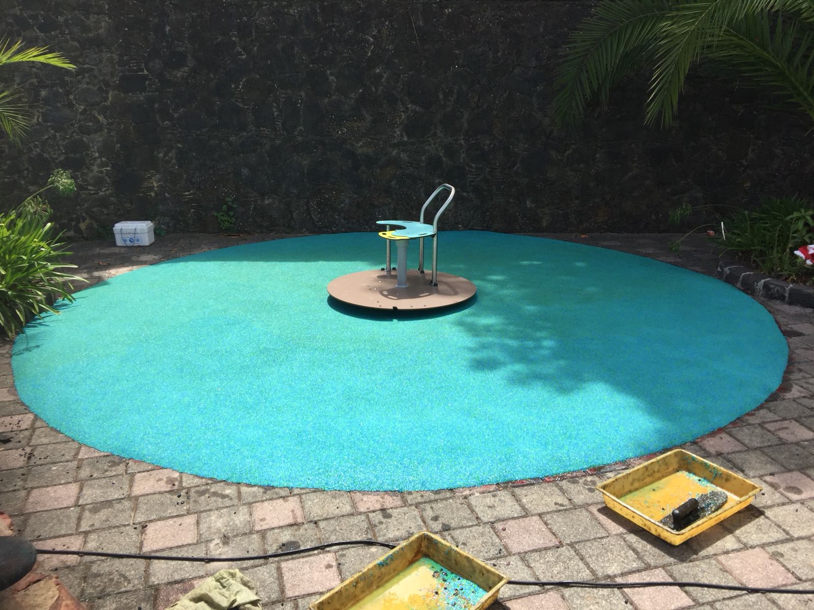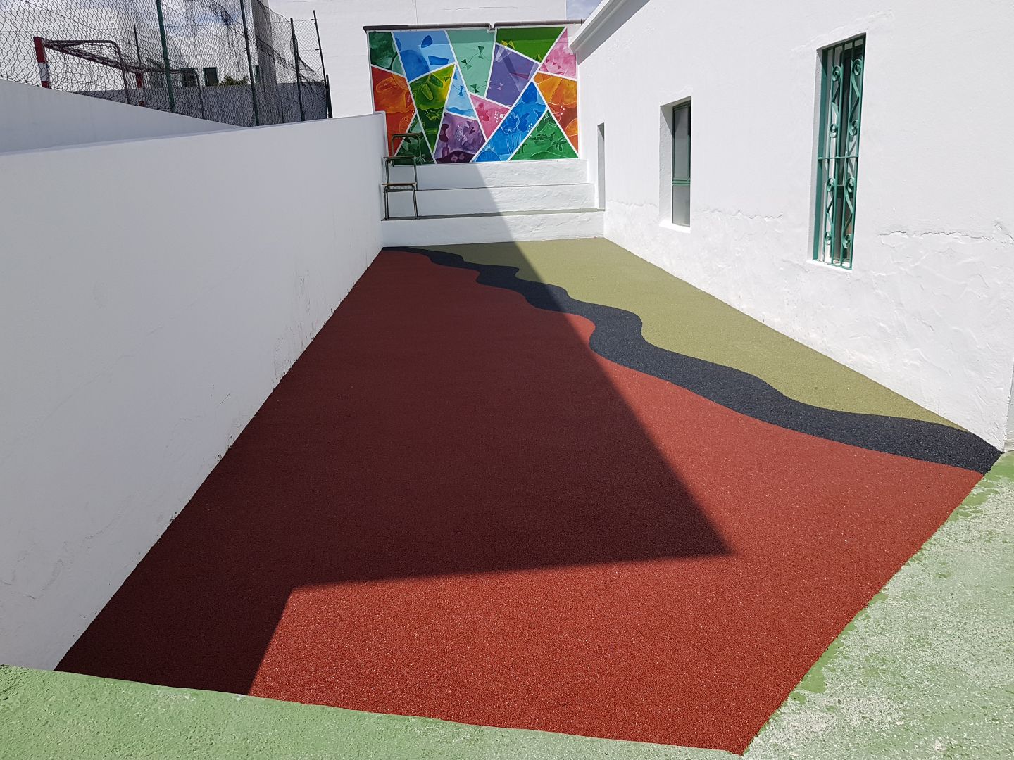 Una de nuestras especialidades es la colocación de pavimento amortiguador tanto en losetas como en pavimento continuo, siempre cumpliendo con la normativa vigente en (UNE-EN 1176-7:2008).