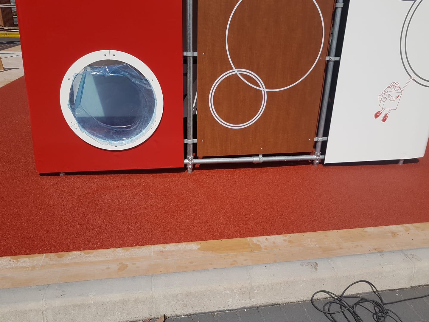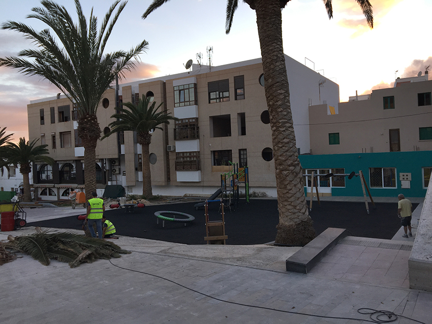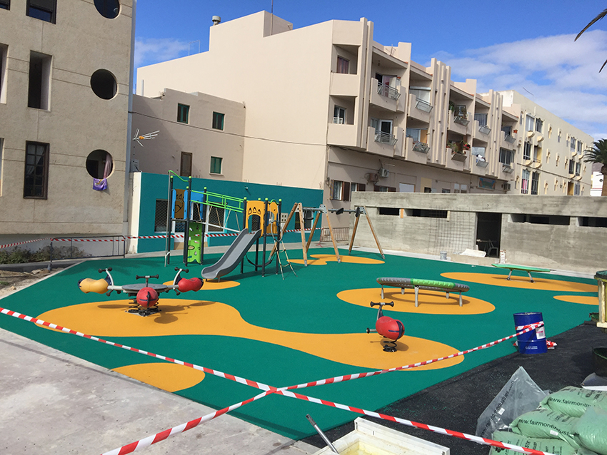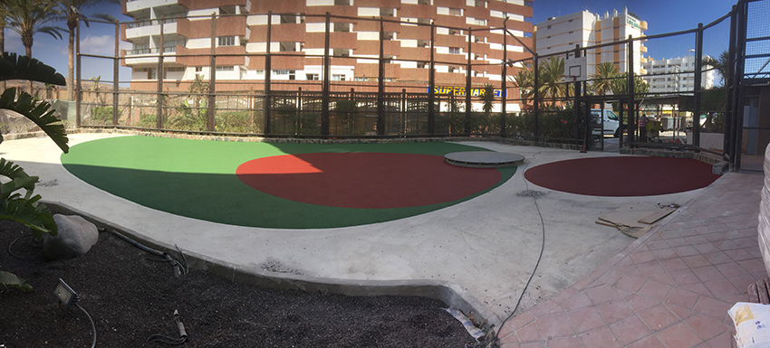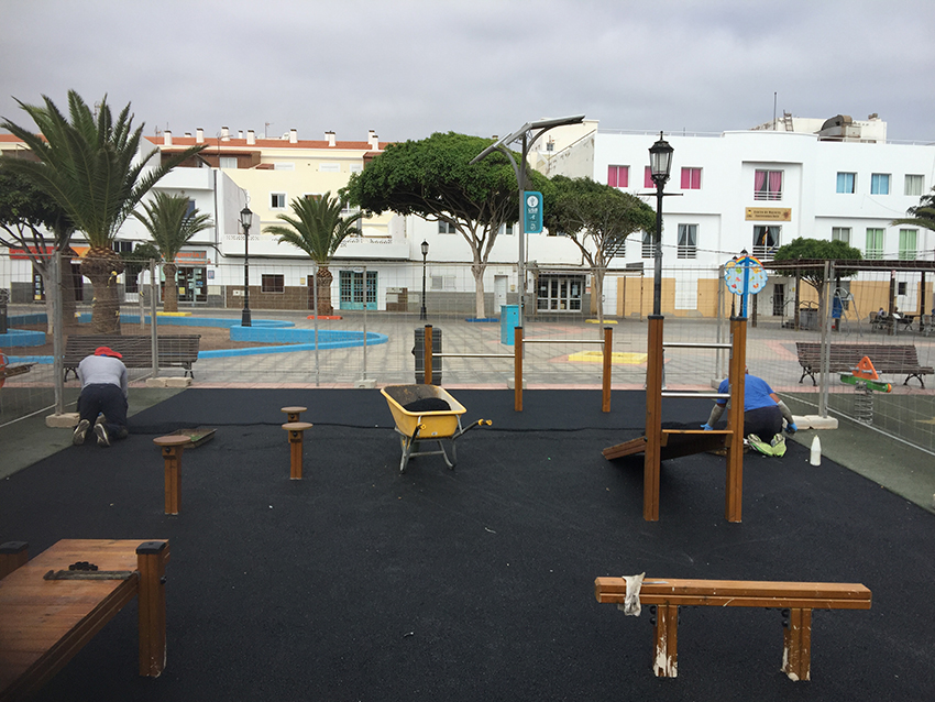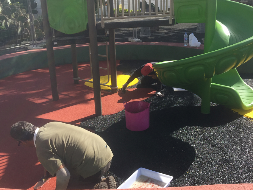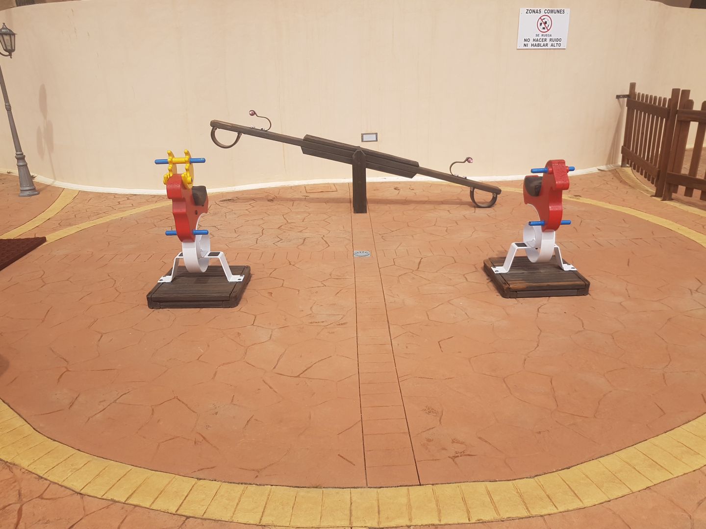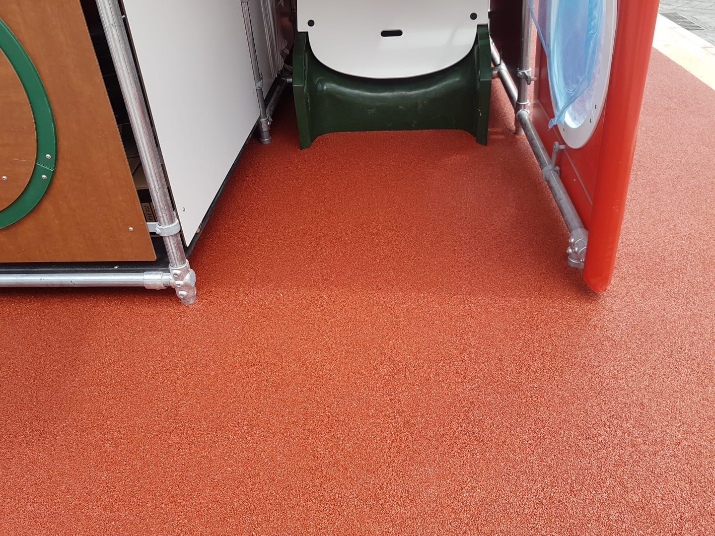 Una de nuestras especialidades es la colocación de pavimento amortiguador tanto en losetas como en pavimento continuo, siempre cumpliendo con la normativa vigente en (UNE-EN 1176-7:2008).