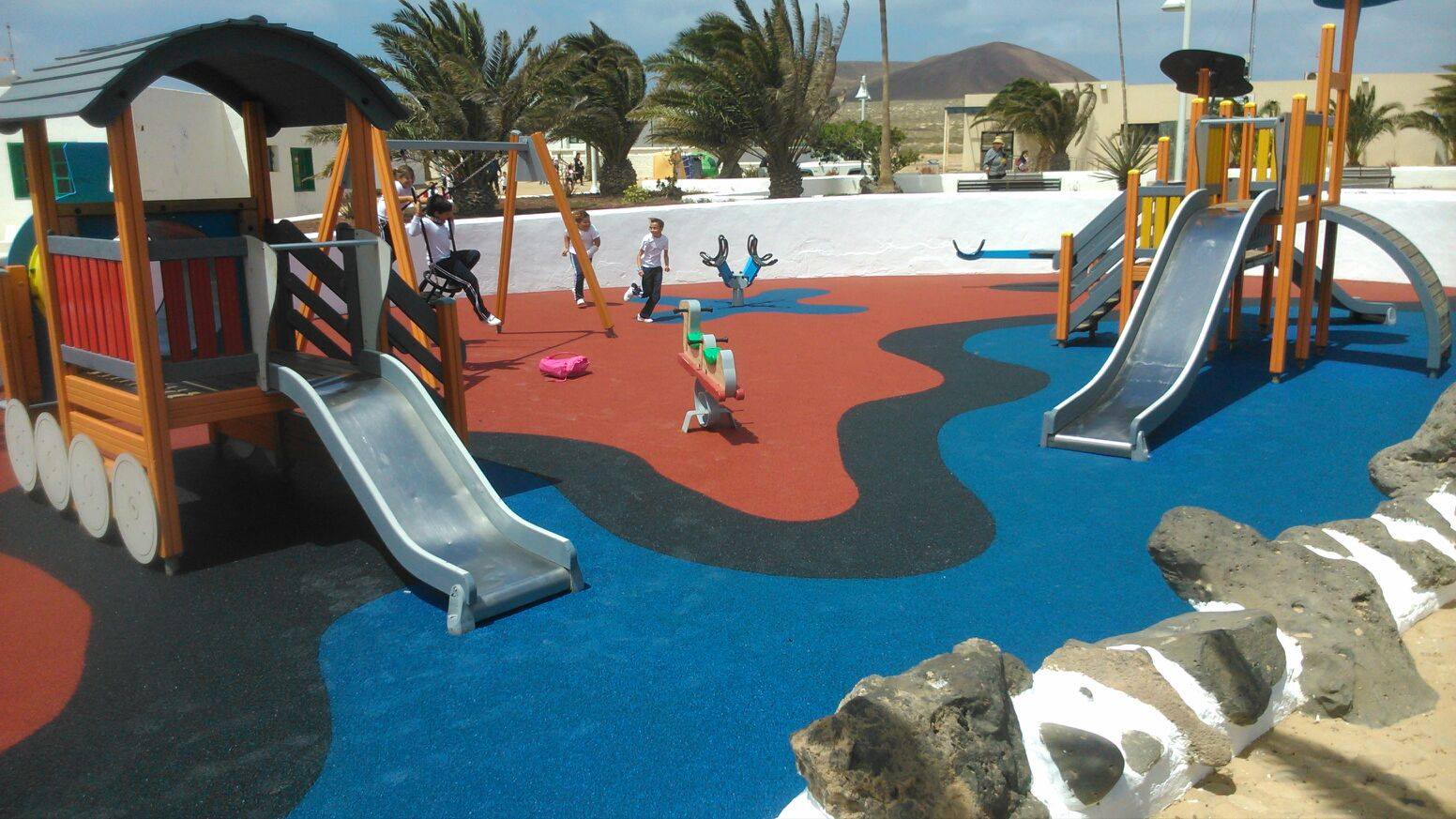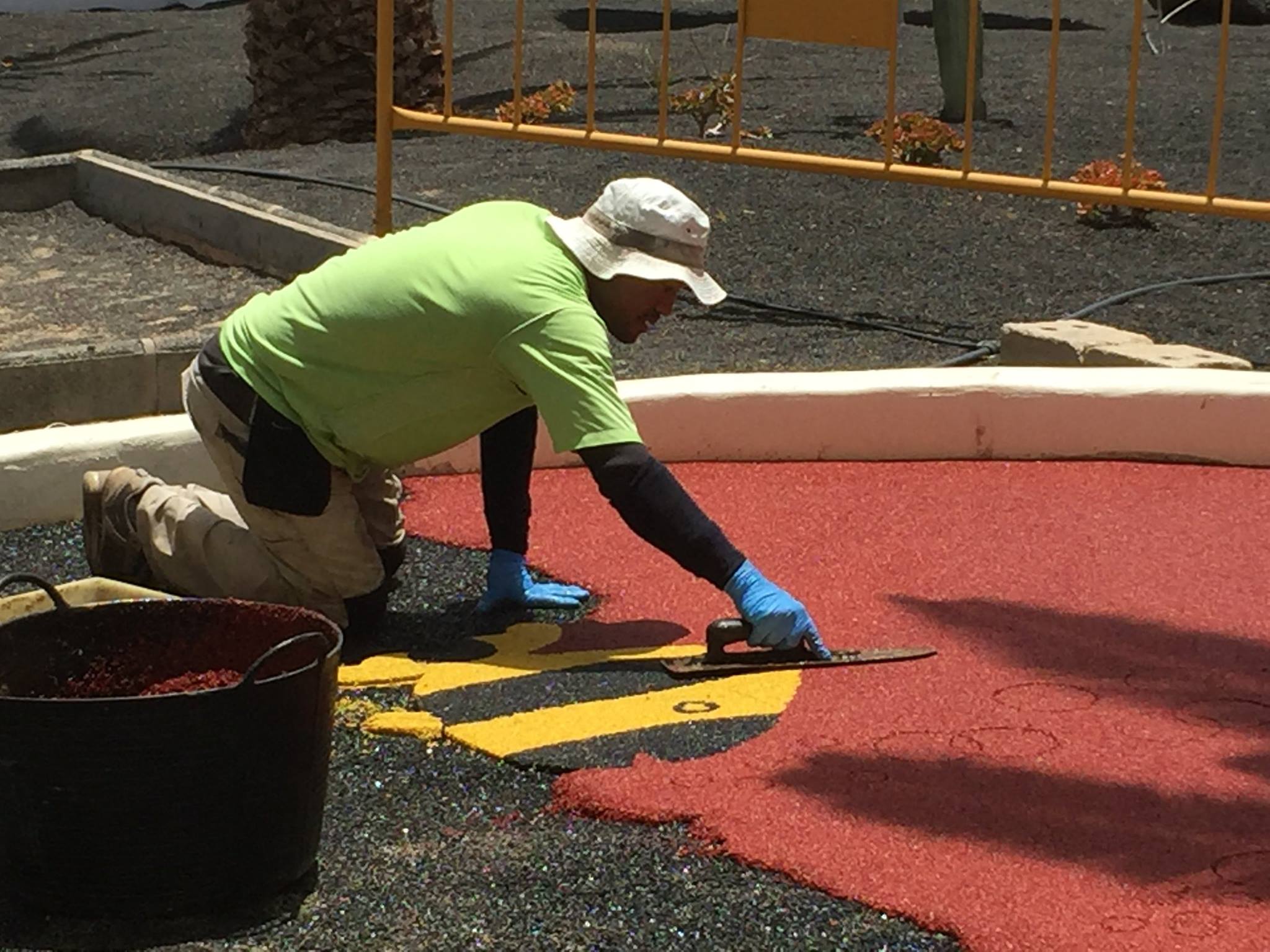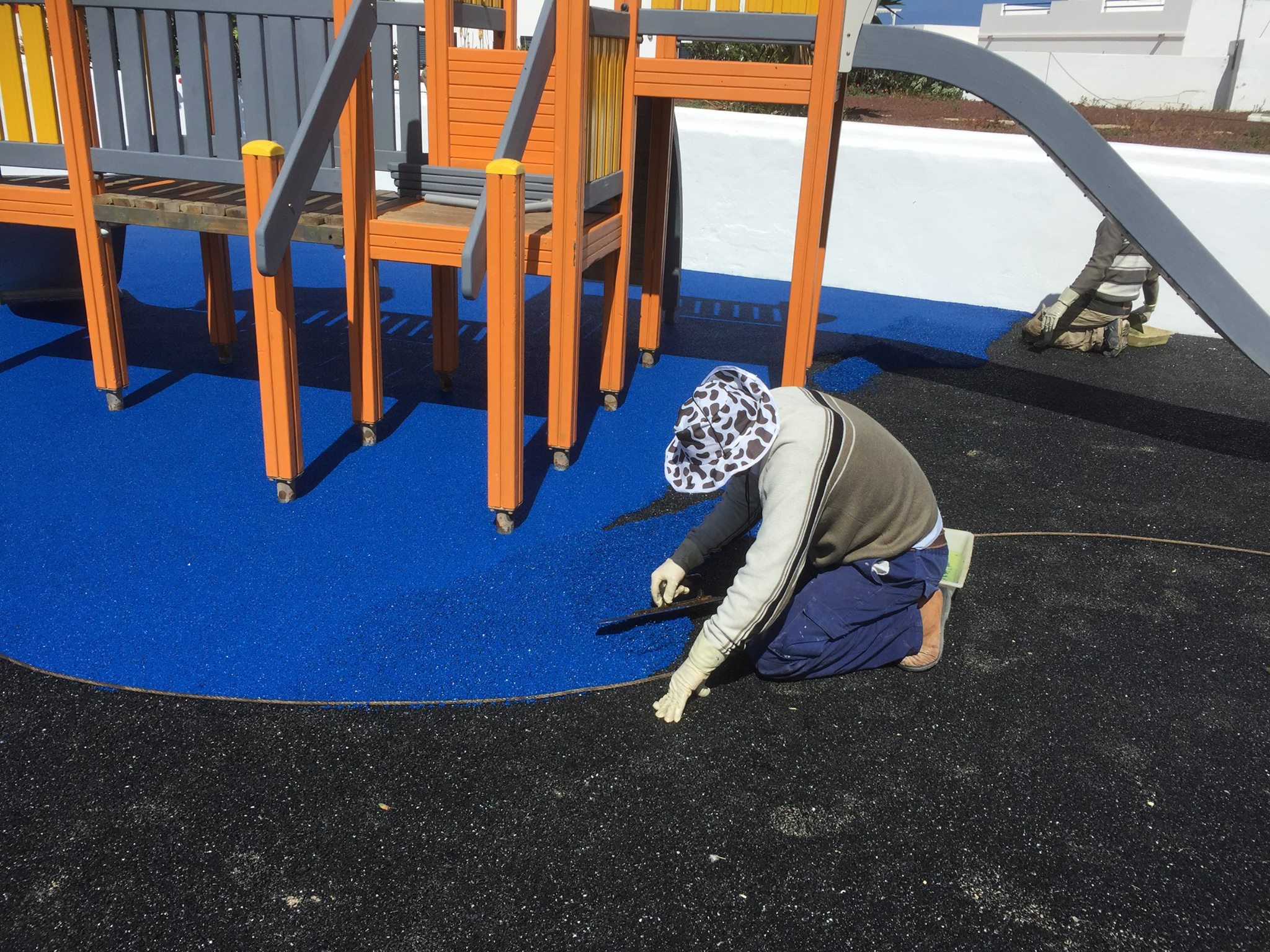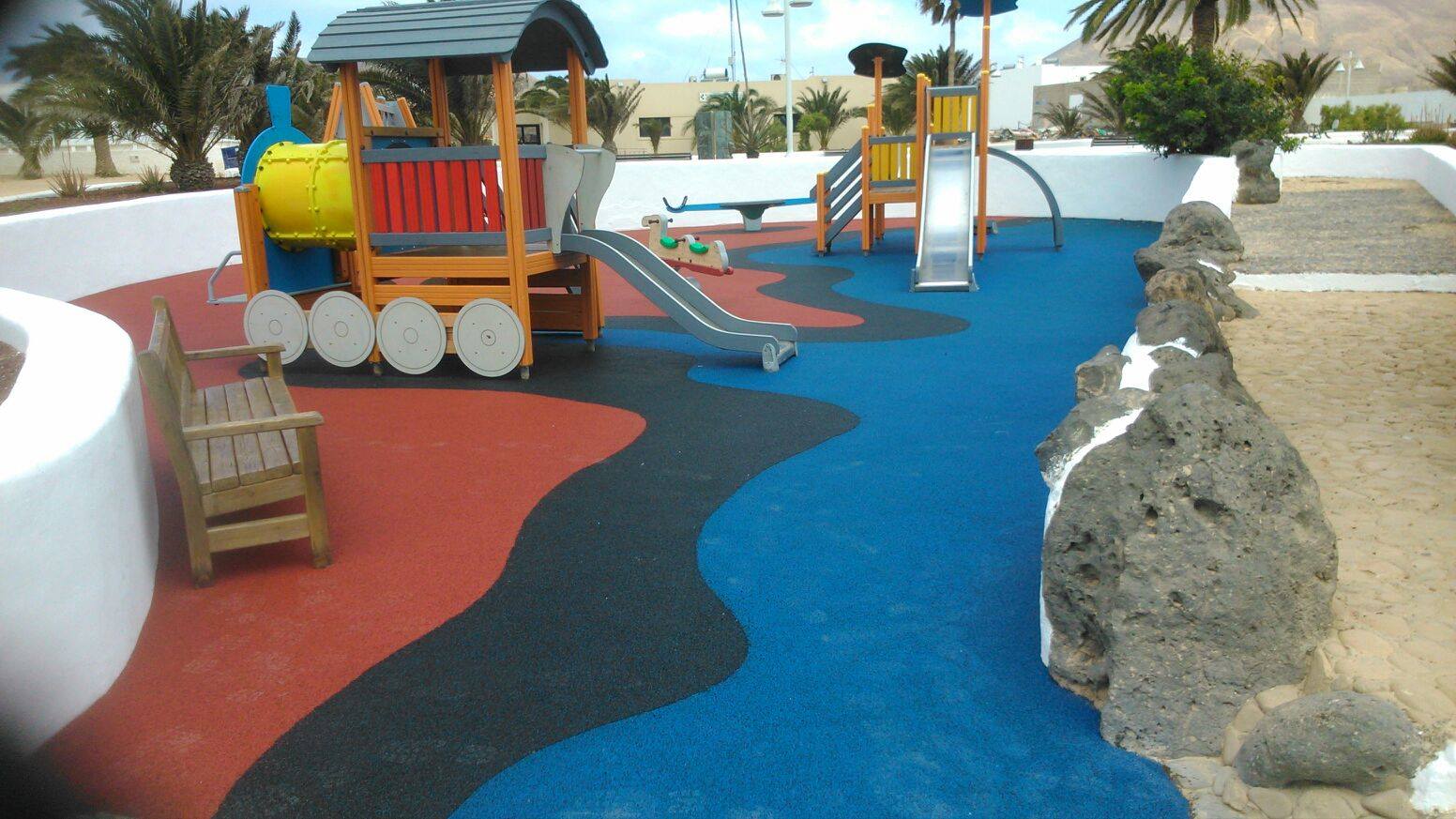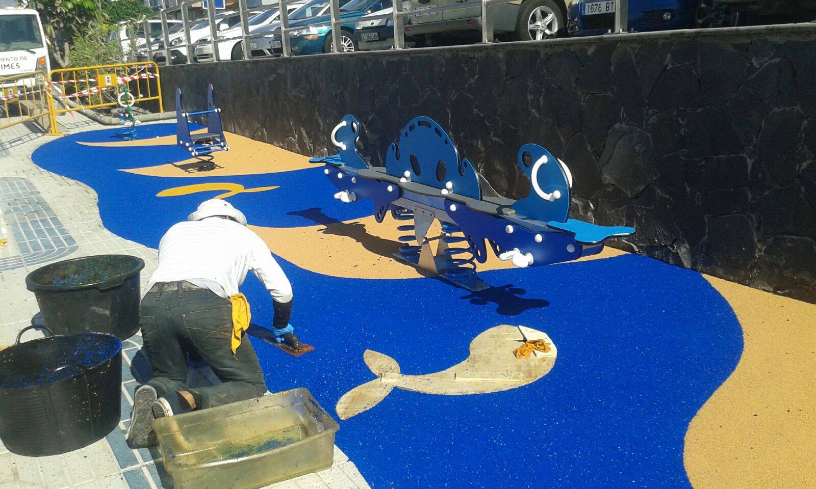 Una de nuestras especialidades es la colocación de pavimento amortiguador tanto en losetas como en pavimento continuo, siempre cumpliendo con la normativa vigente en (UNE-EN 1176-7:2008).