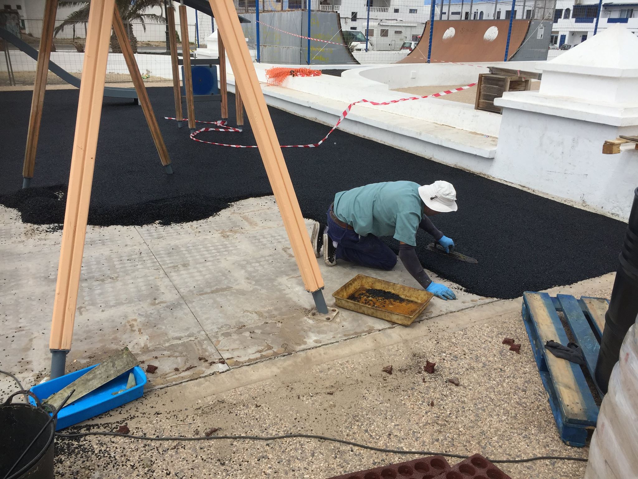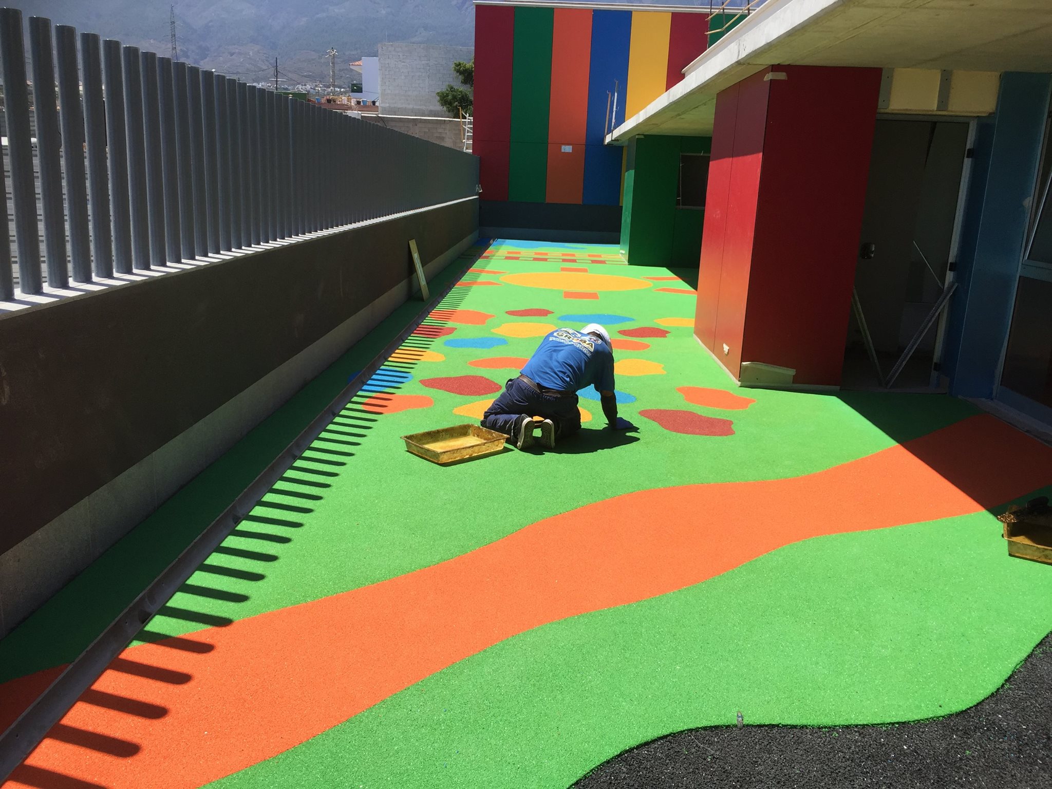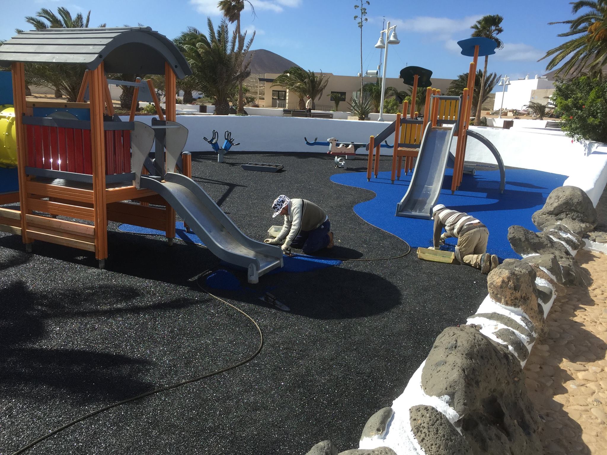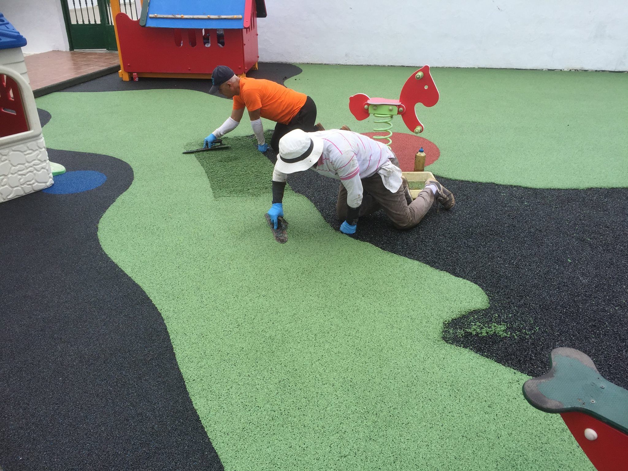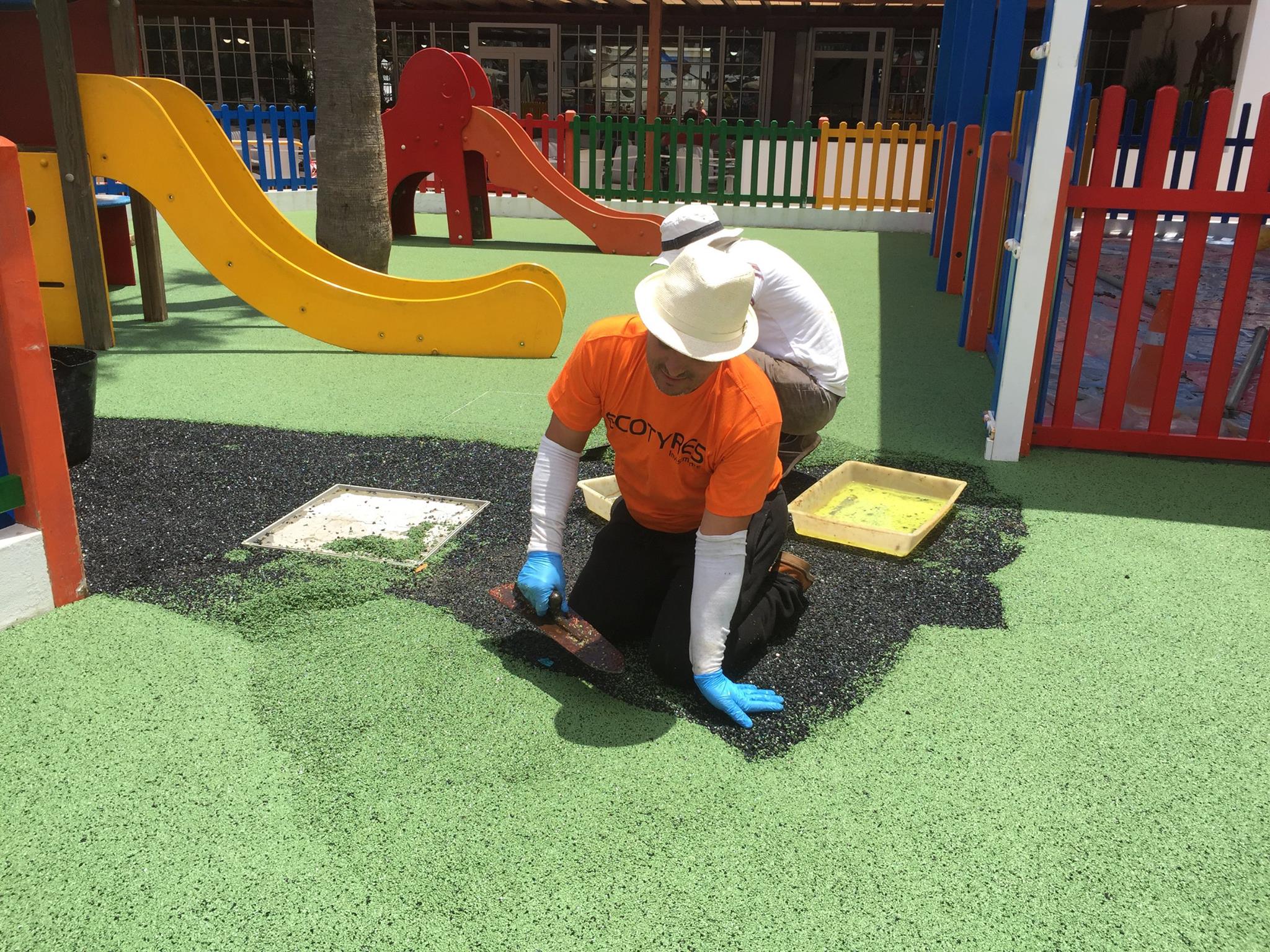 Una de nuestras especialidades es la colocación de pavimento amortiguador tanto en losetas como en pavimento continuo, siempre cumpliendo con la normativa vigente en (UNE-EN 1176-7:2008).