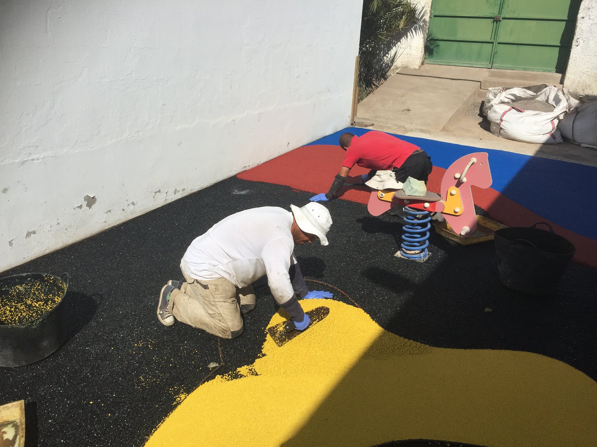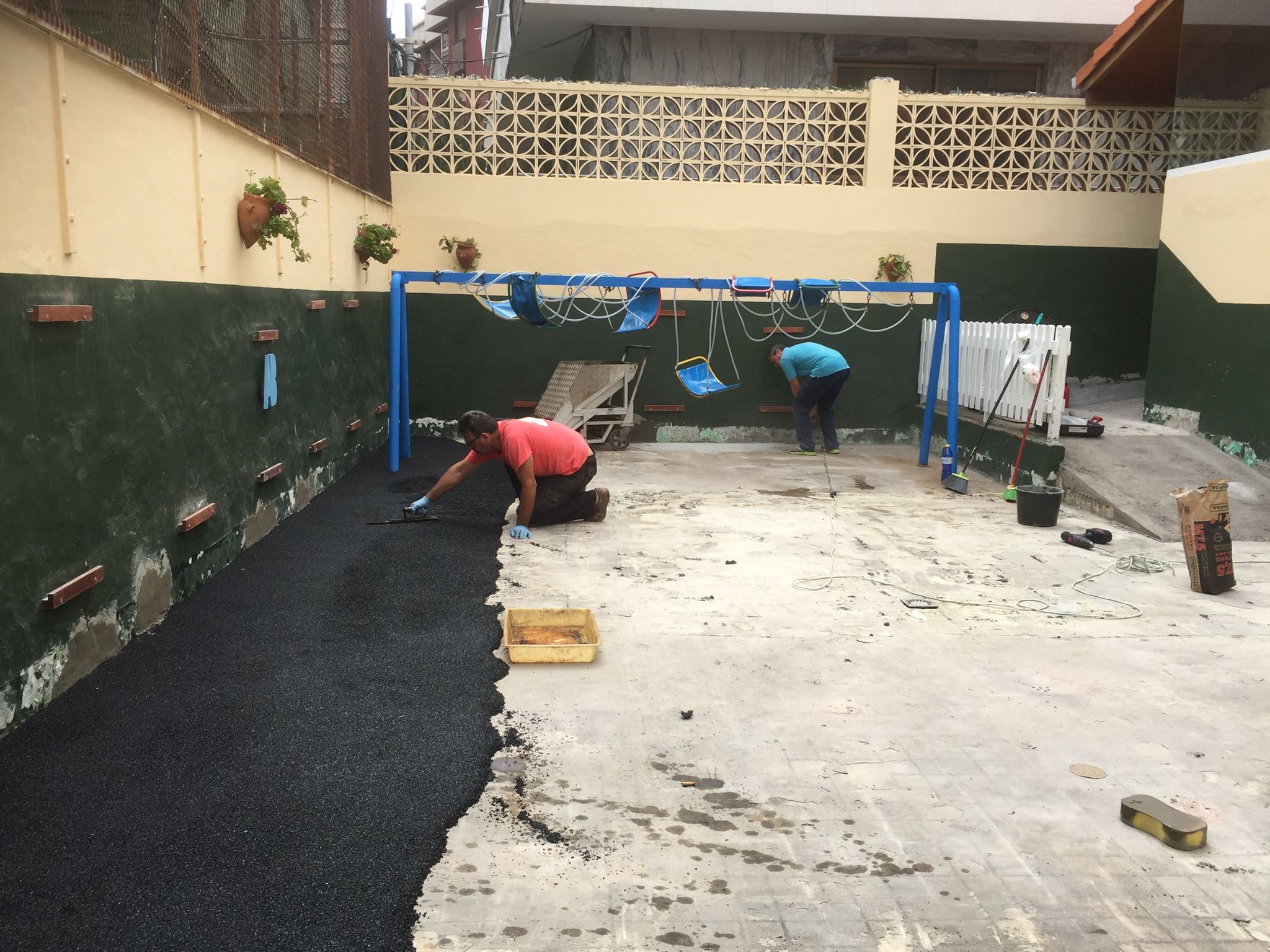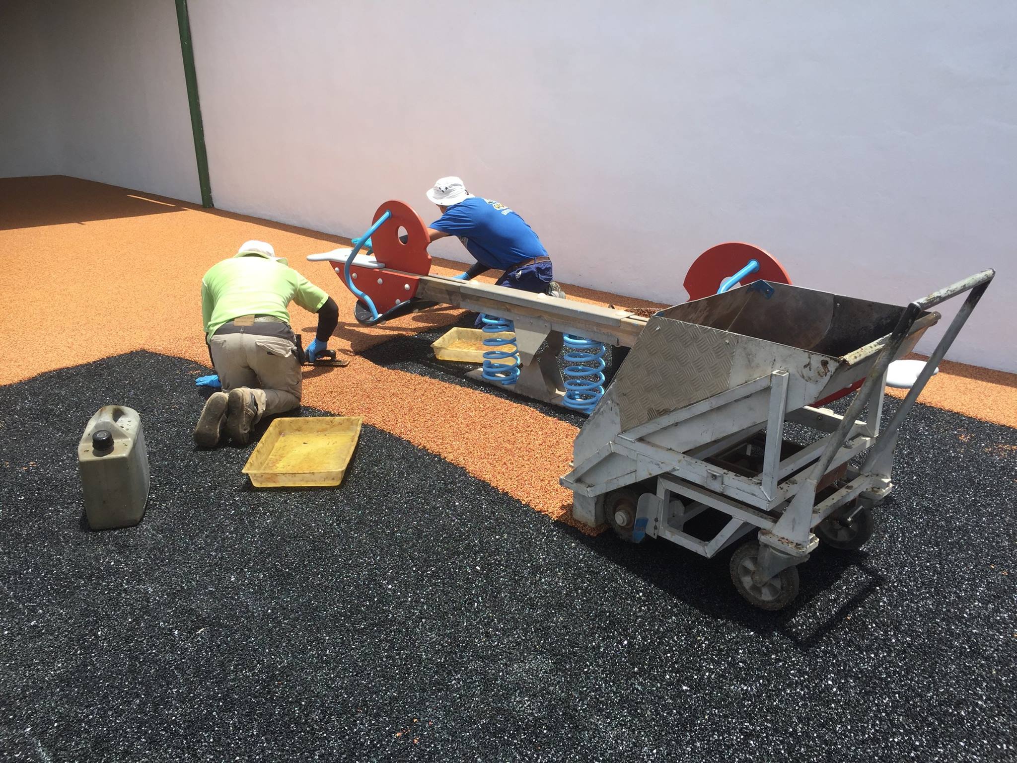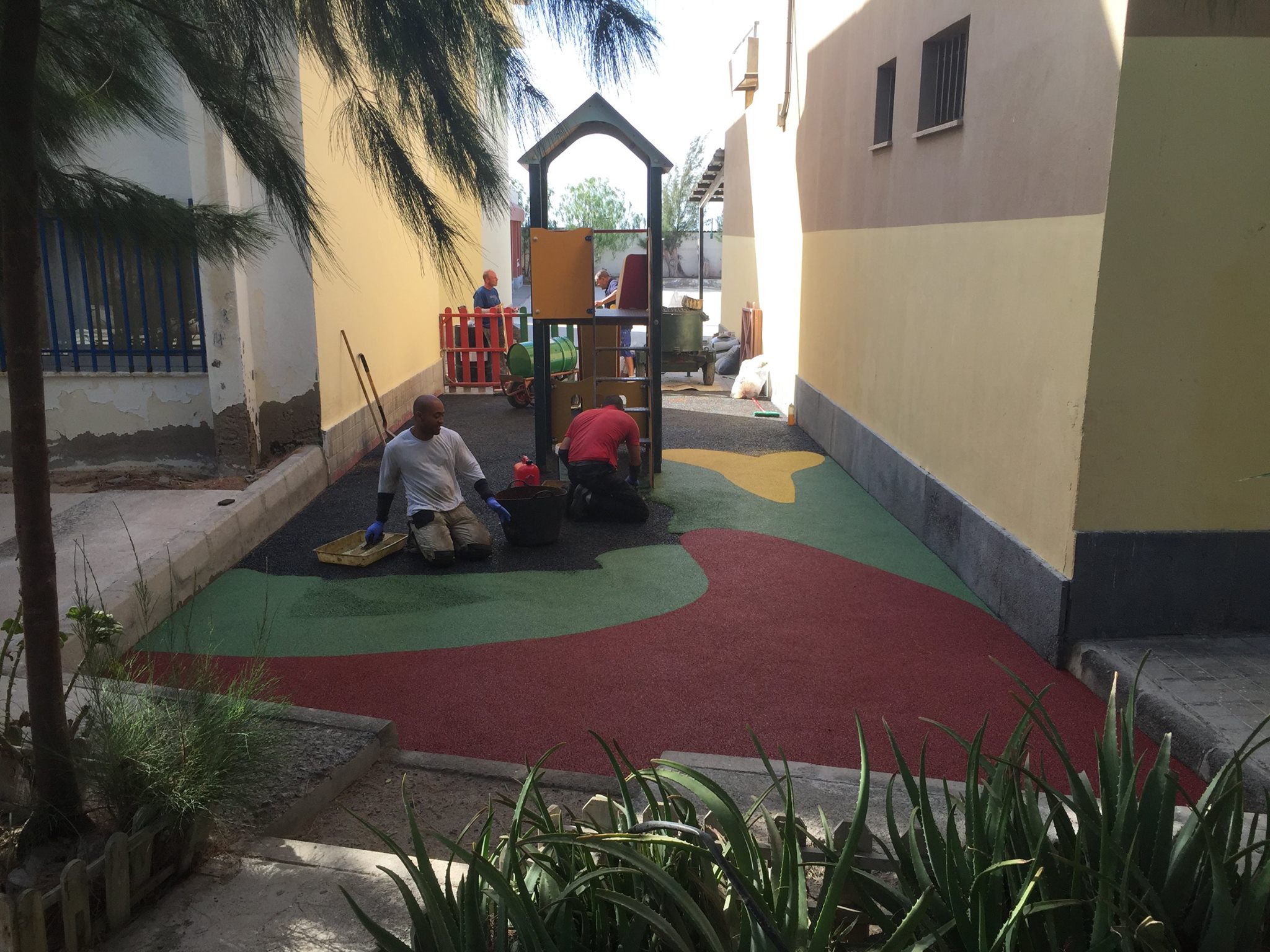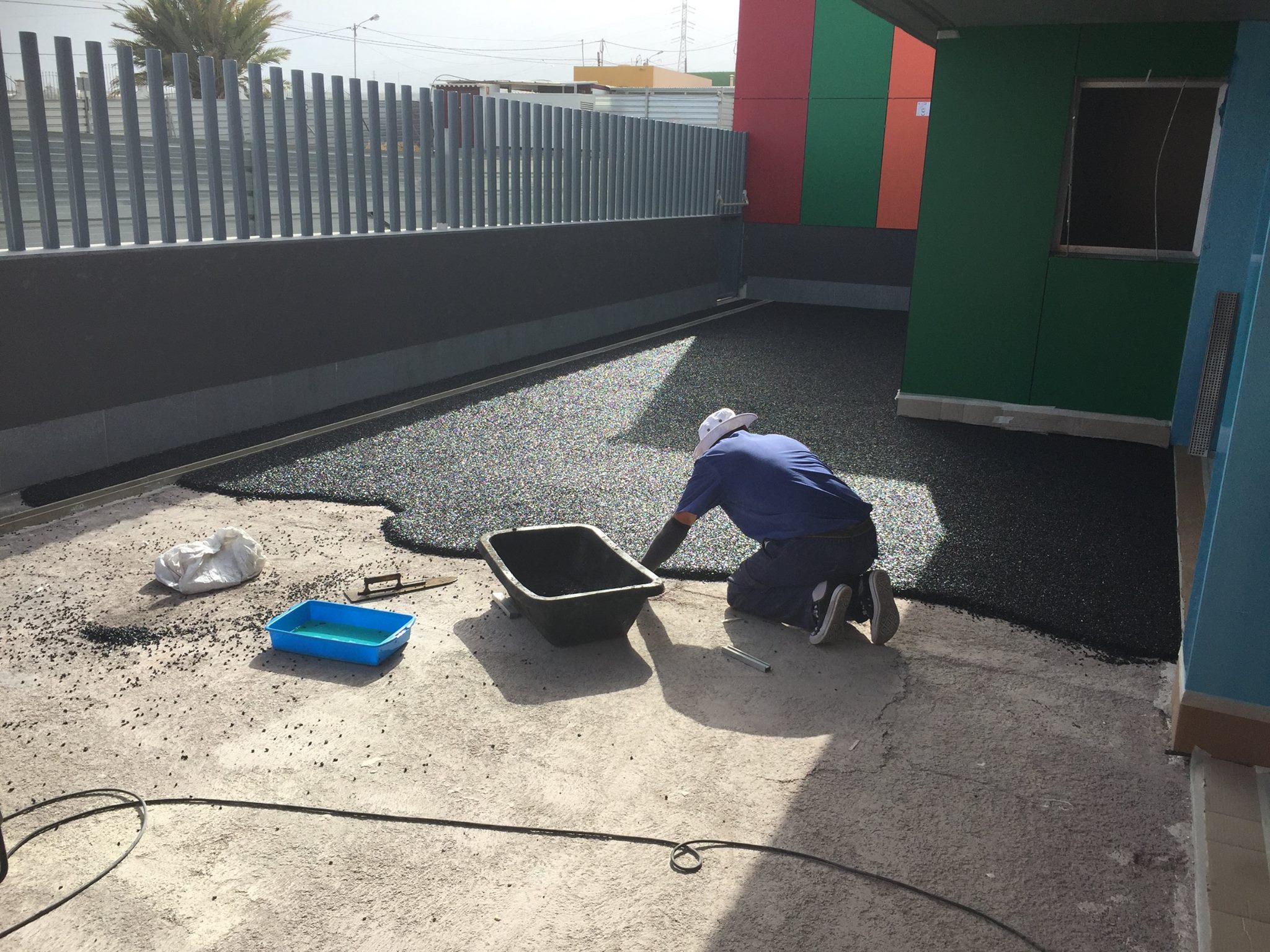 Una de nuestras especialidades es la colocación de pavimento amortiguador tanto en losetas como en pavimento continuo, siempre cumpliendo con la normativa vigente en (UNE-EN 1176-7:2008).