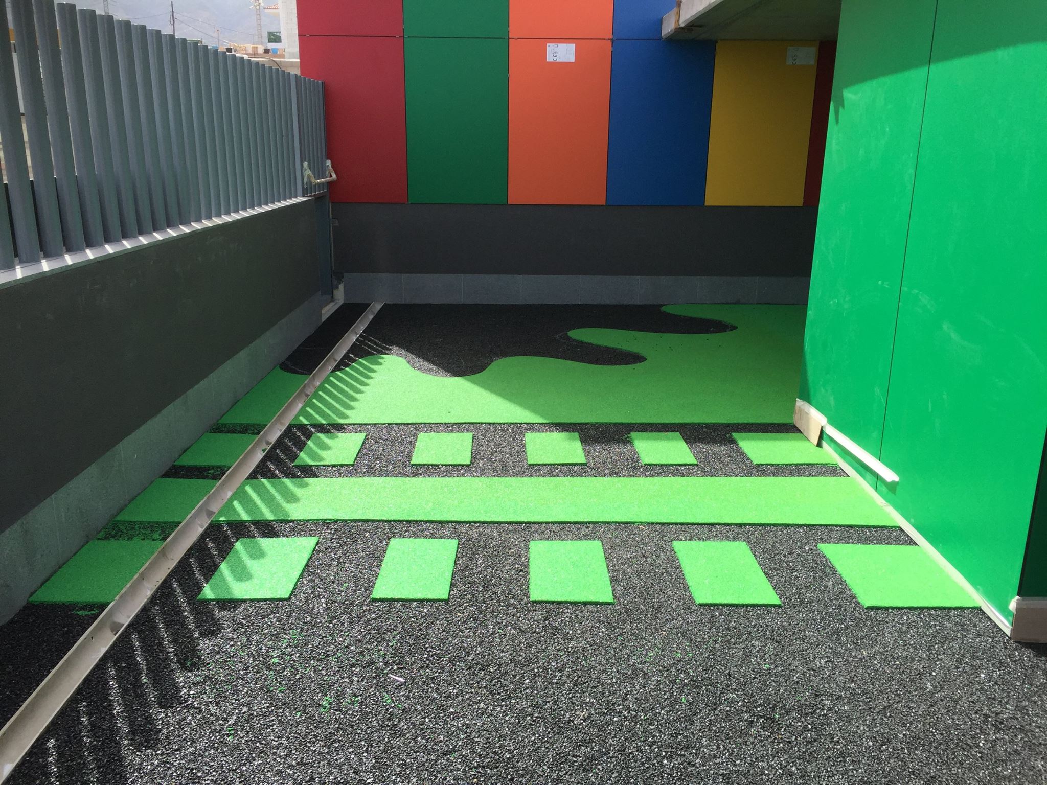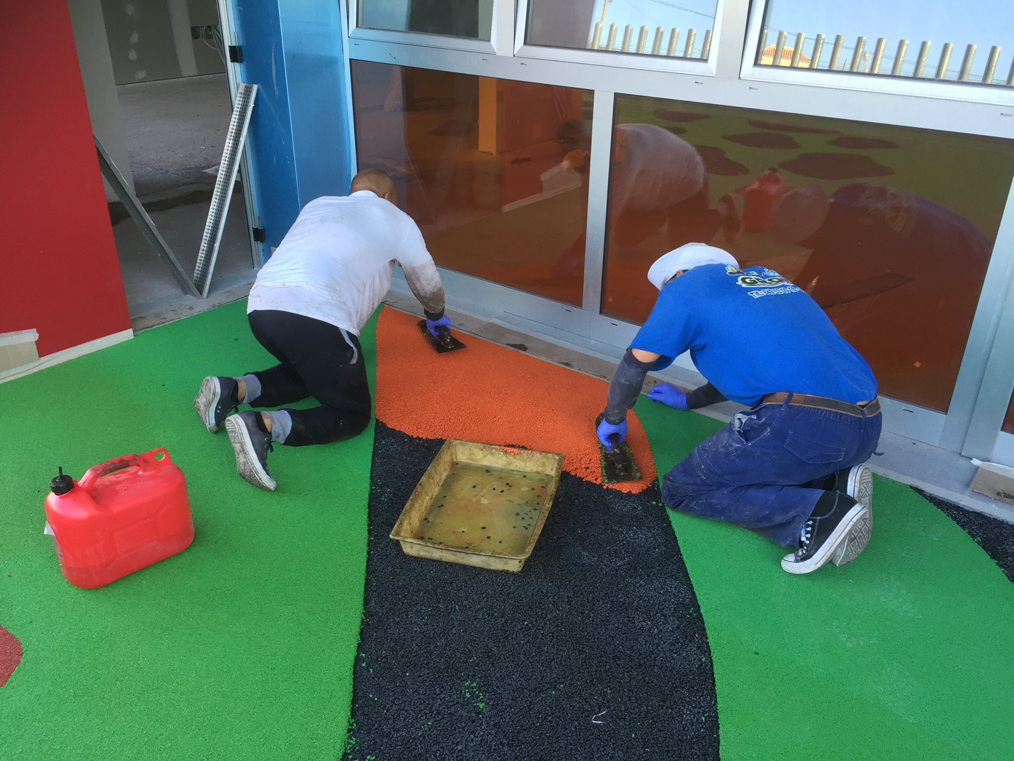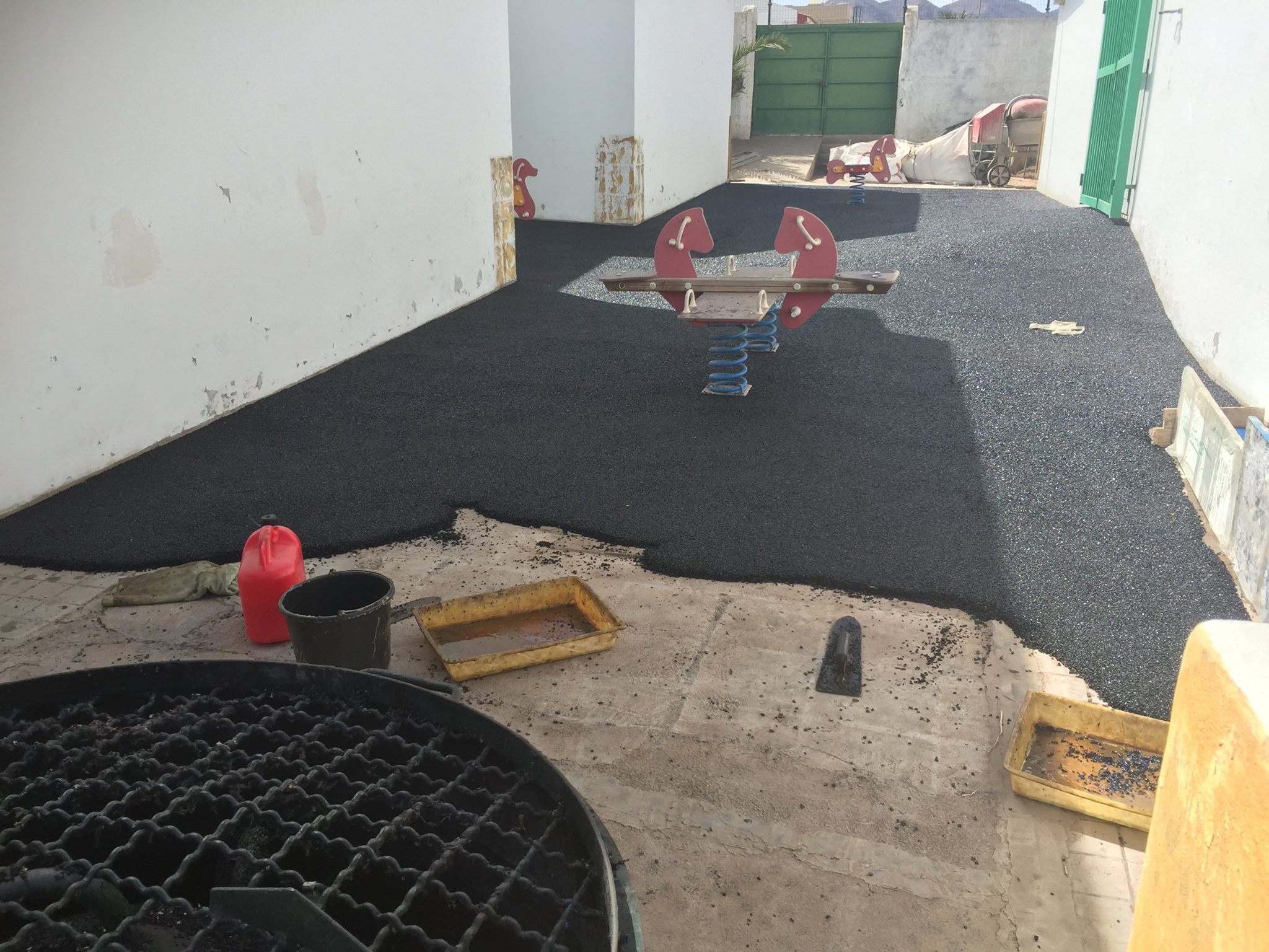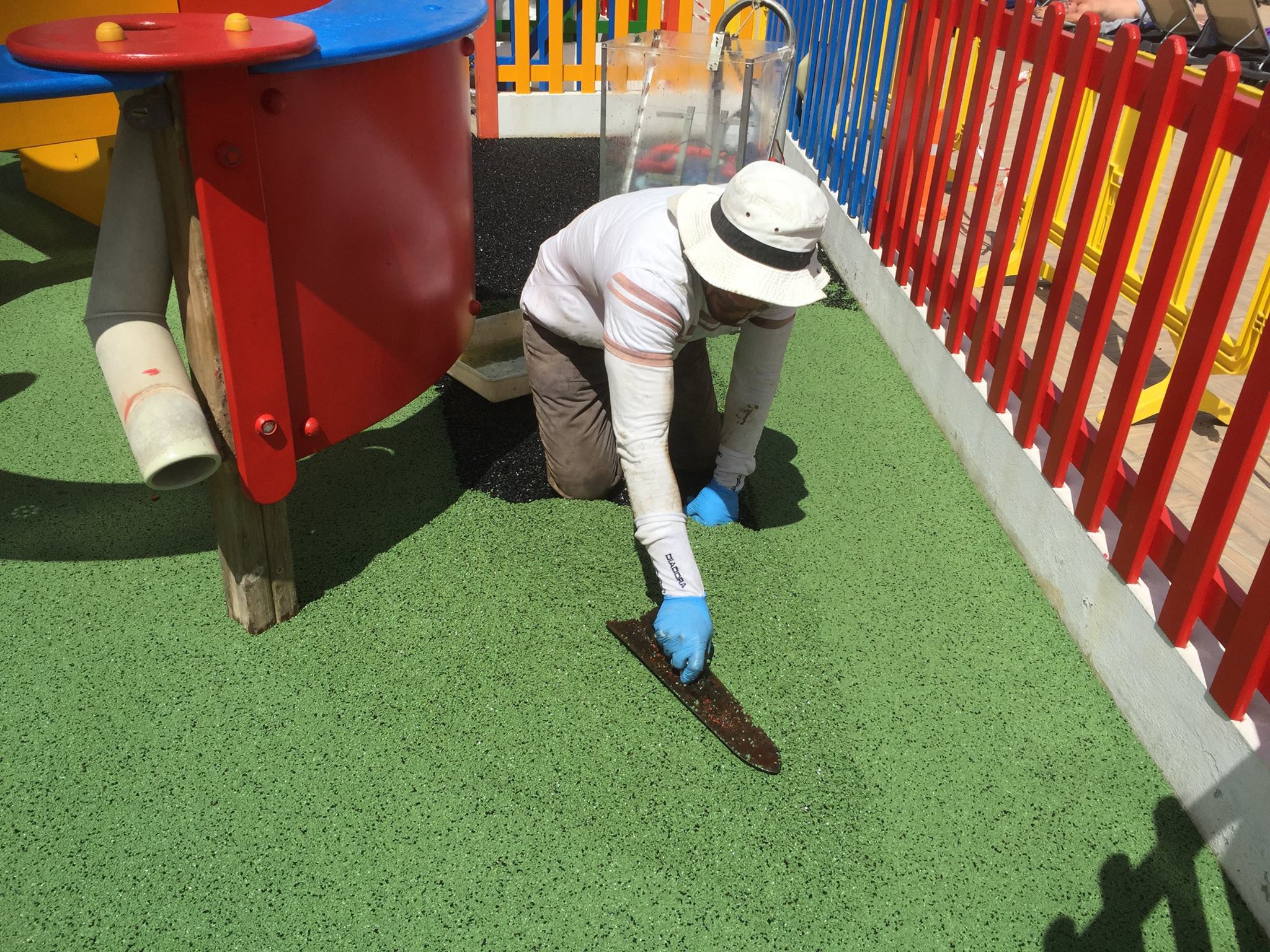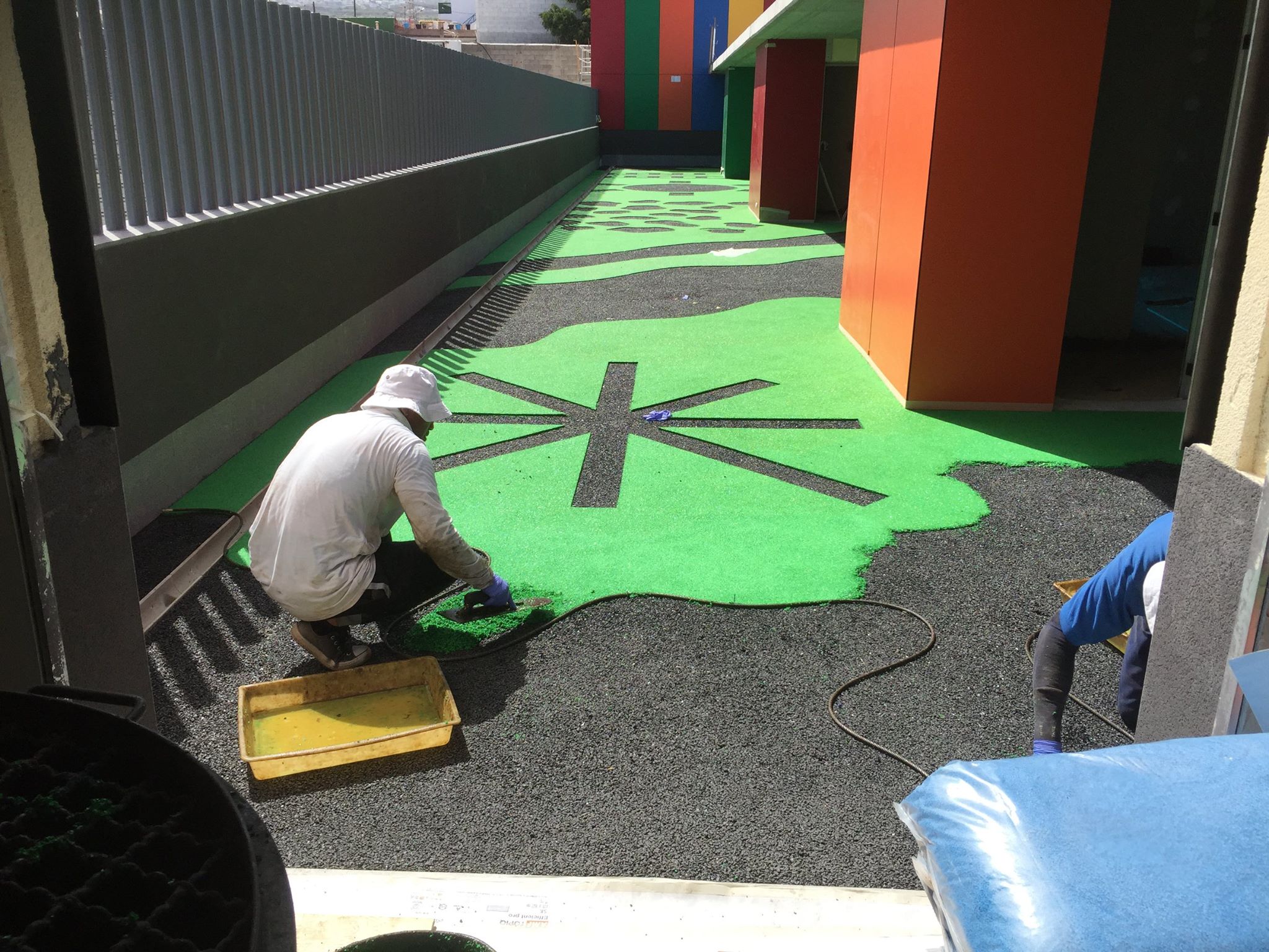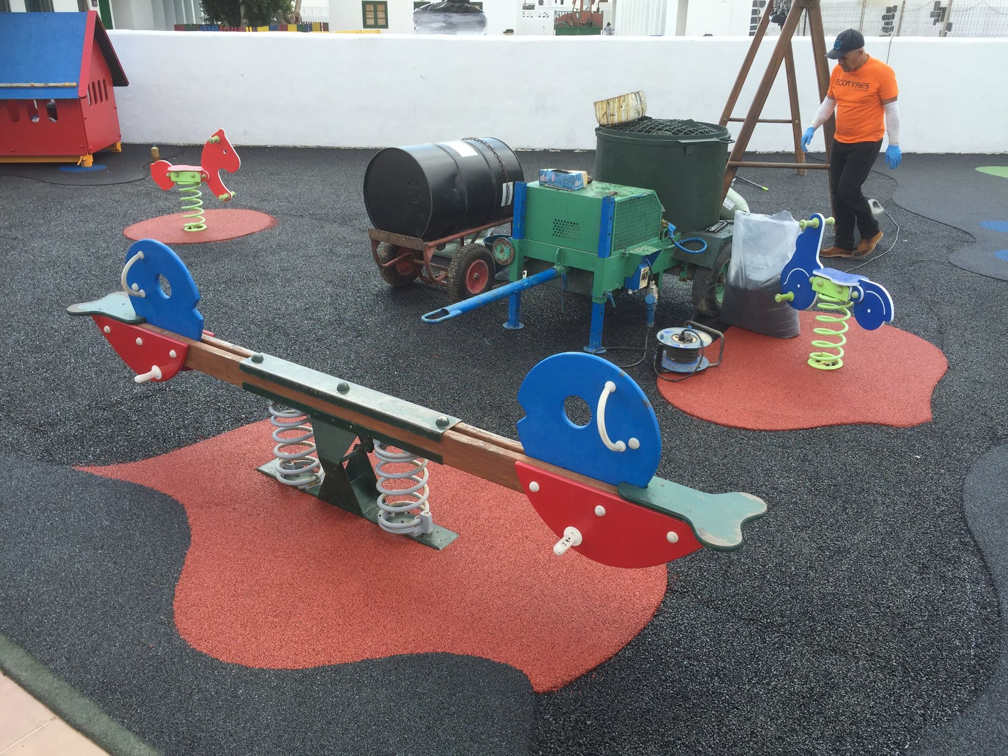 Una de nuestras especialidades es la colocación de pavimento amortiguador tanto en losetas como en pavimento continuo, siempre cumpliendo con la normativa vigente en (UNE-EN 1176-7:2008).