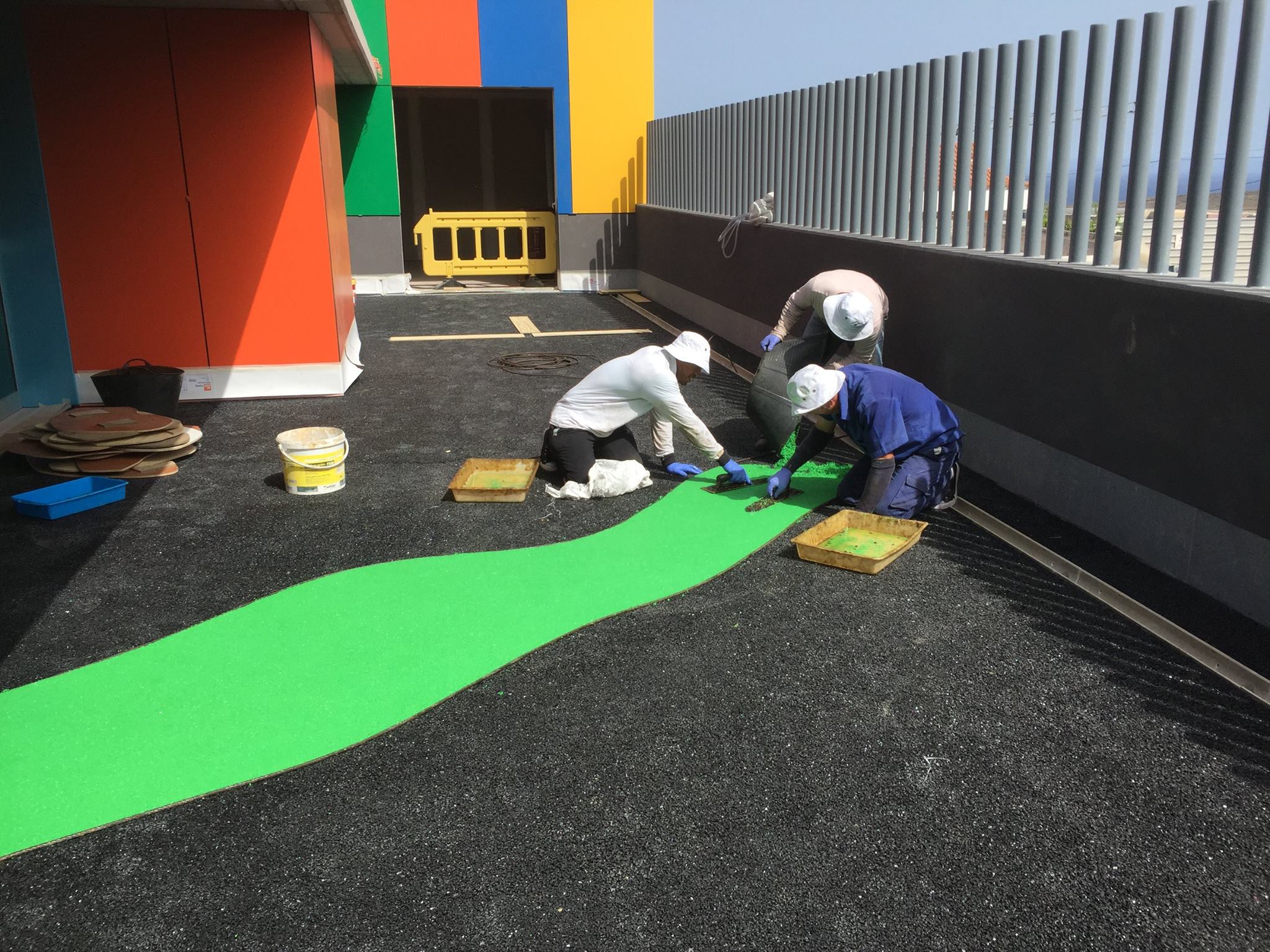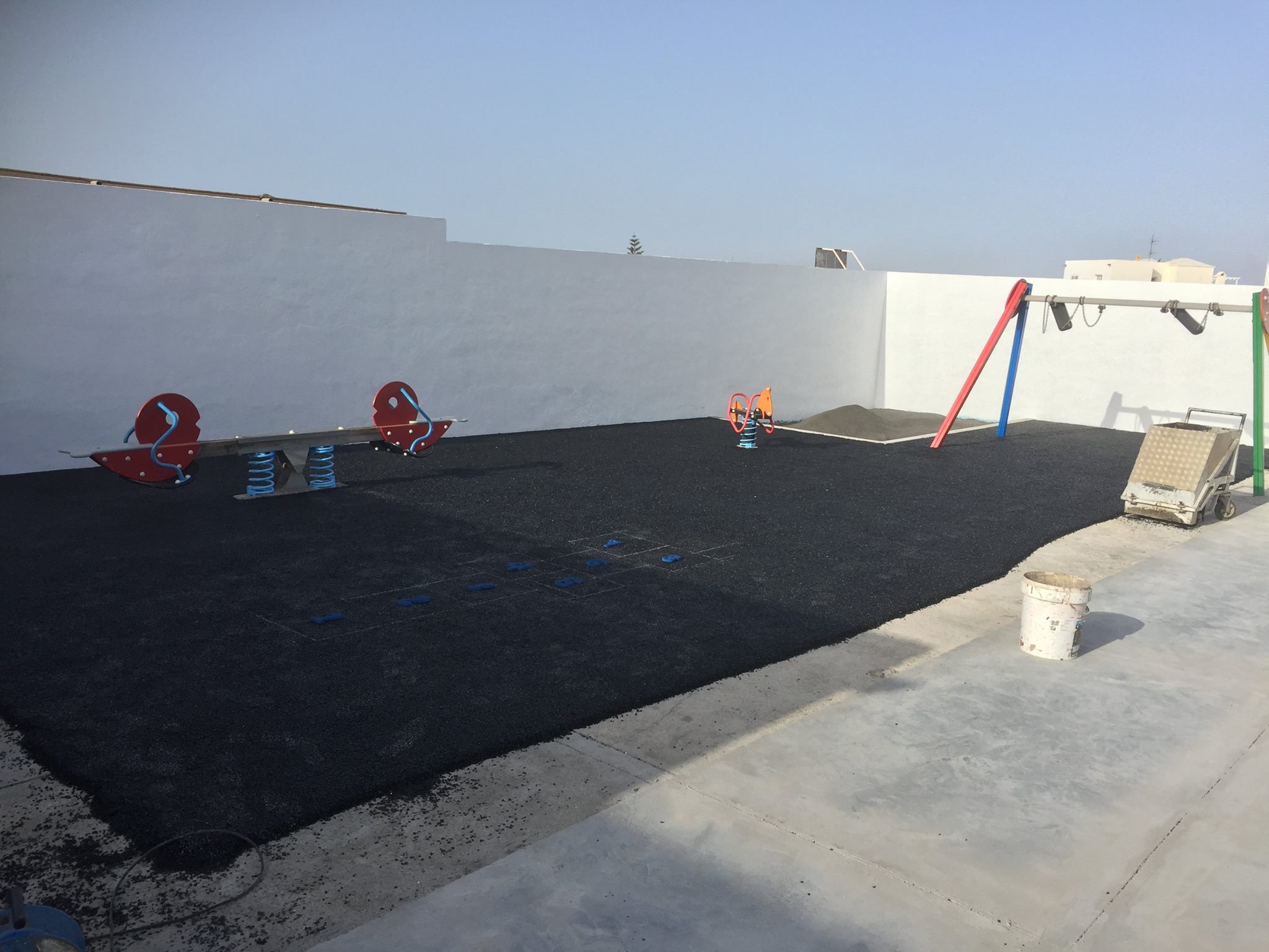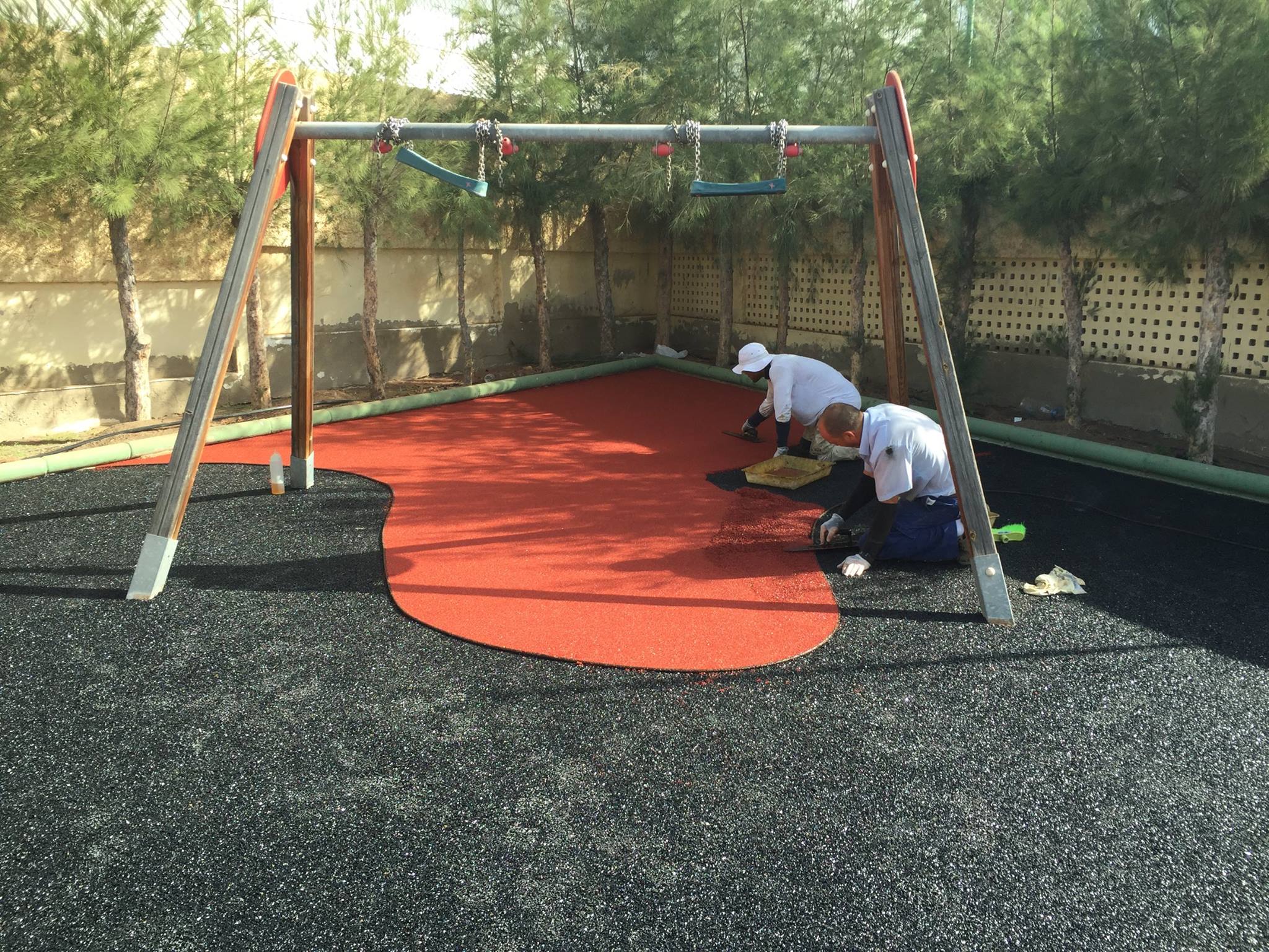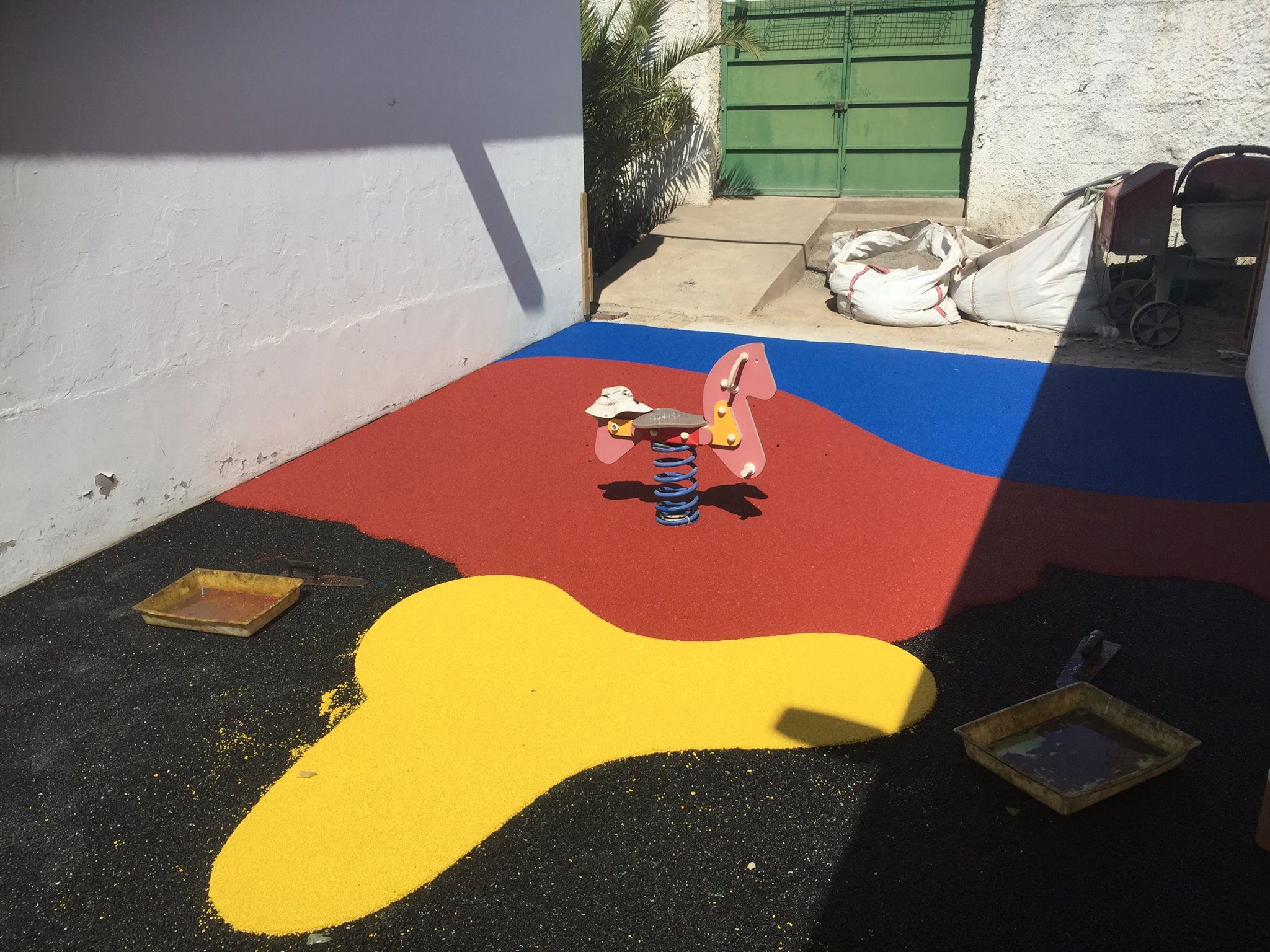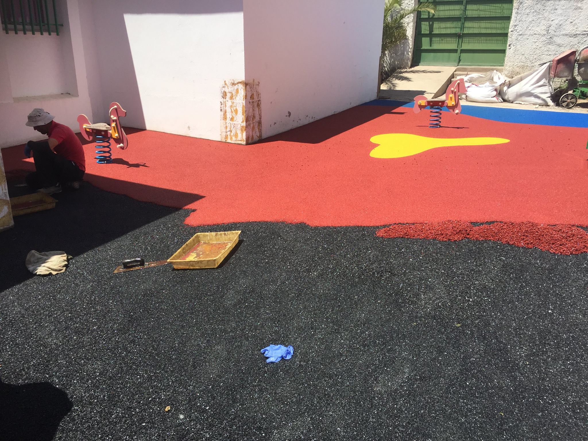 Una de nuestras especialidades es la colocación de pavimento amortiguador tanto en losetas como en pavimento continuo, siempre cumpliendo con la normativa vigente en (UNE-EN 1176-7:2008).