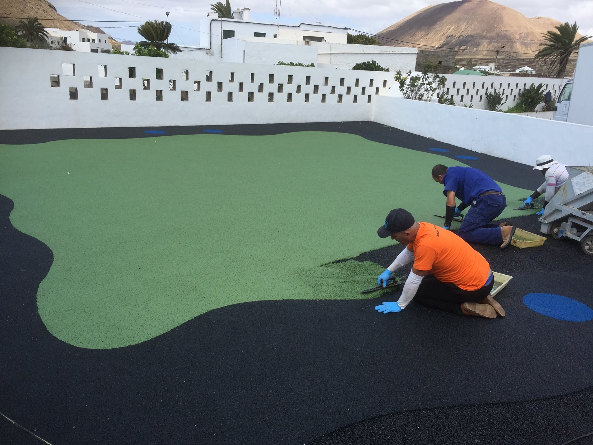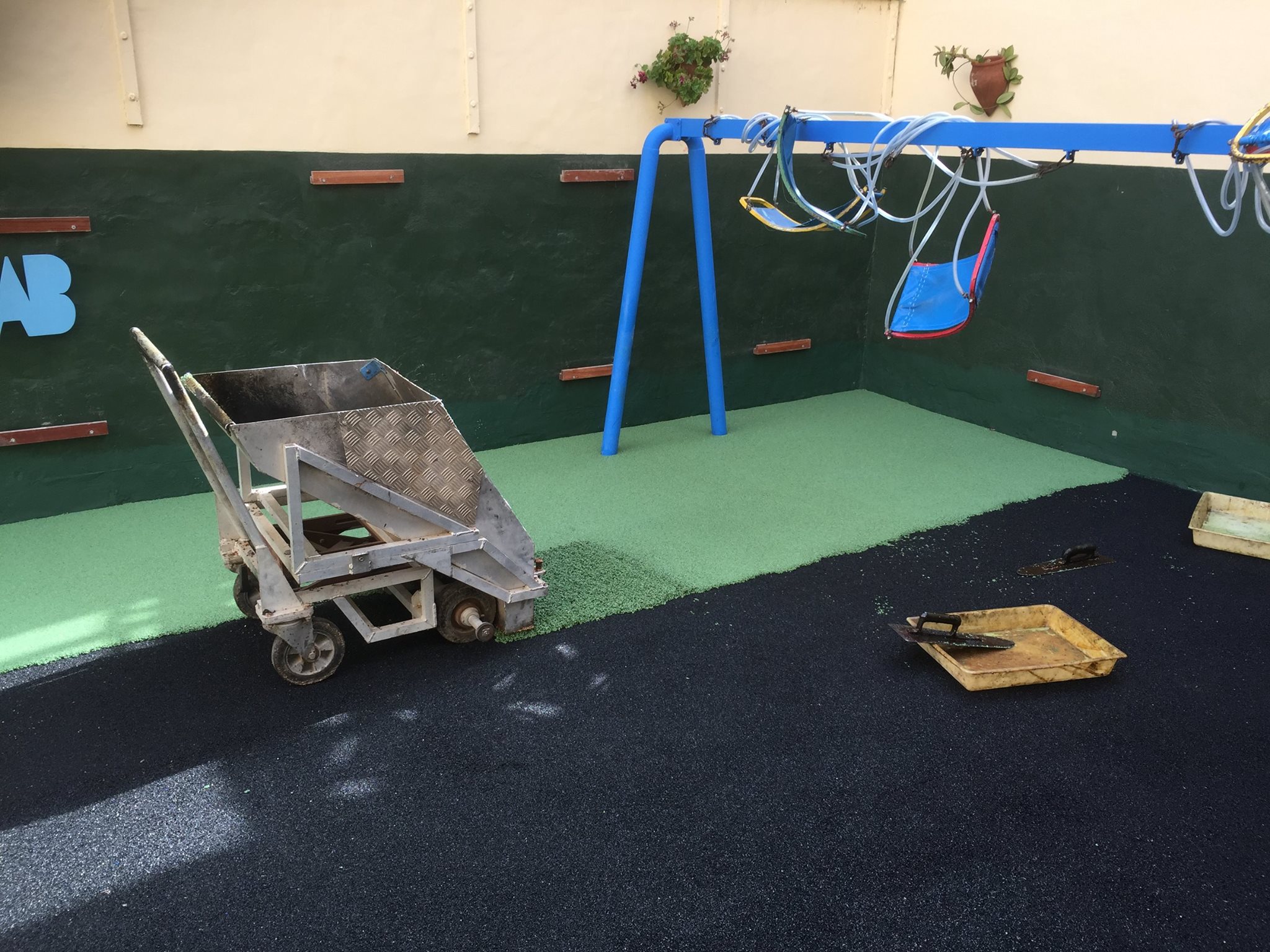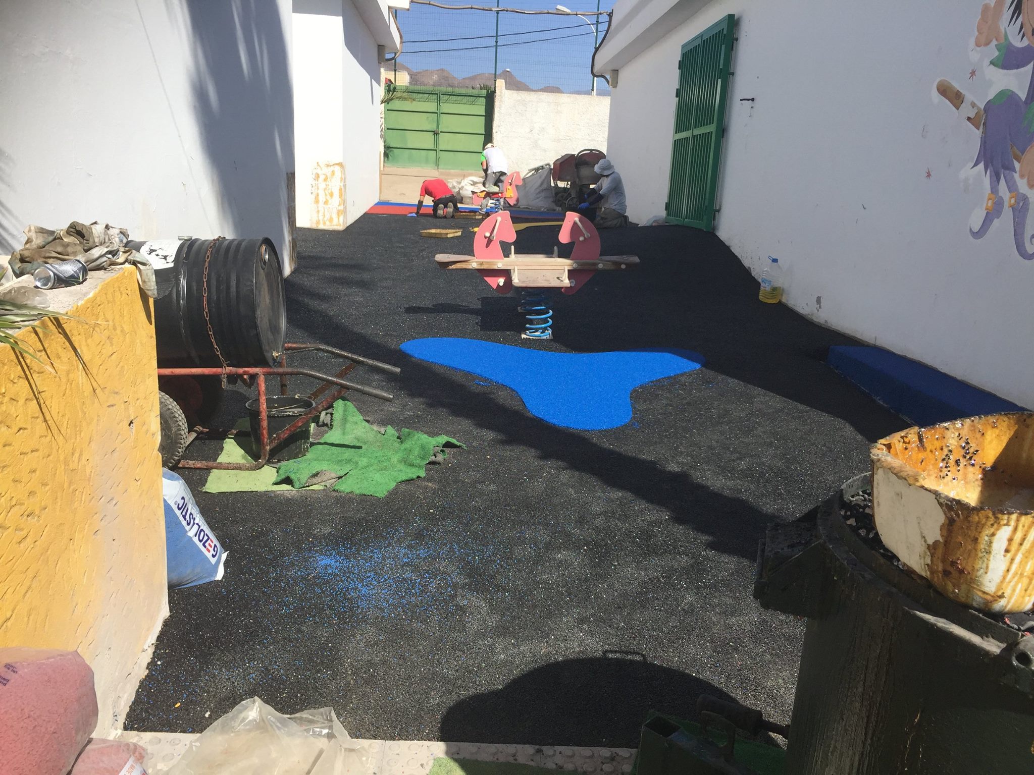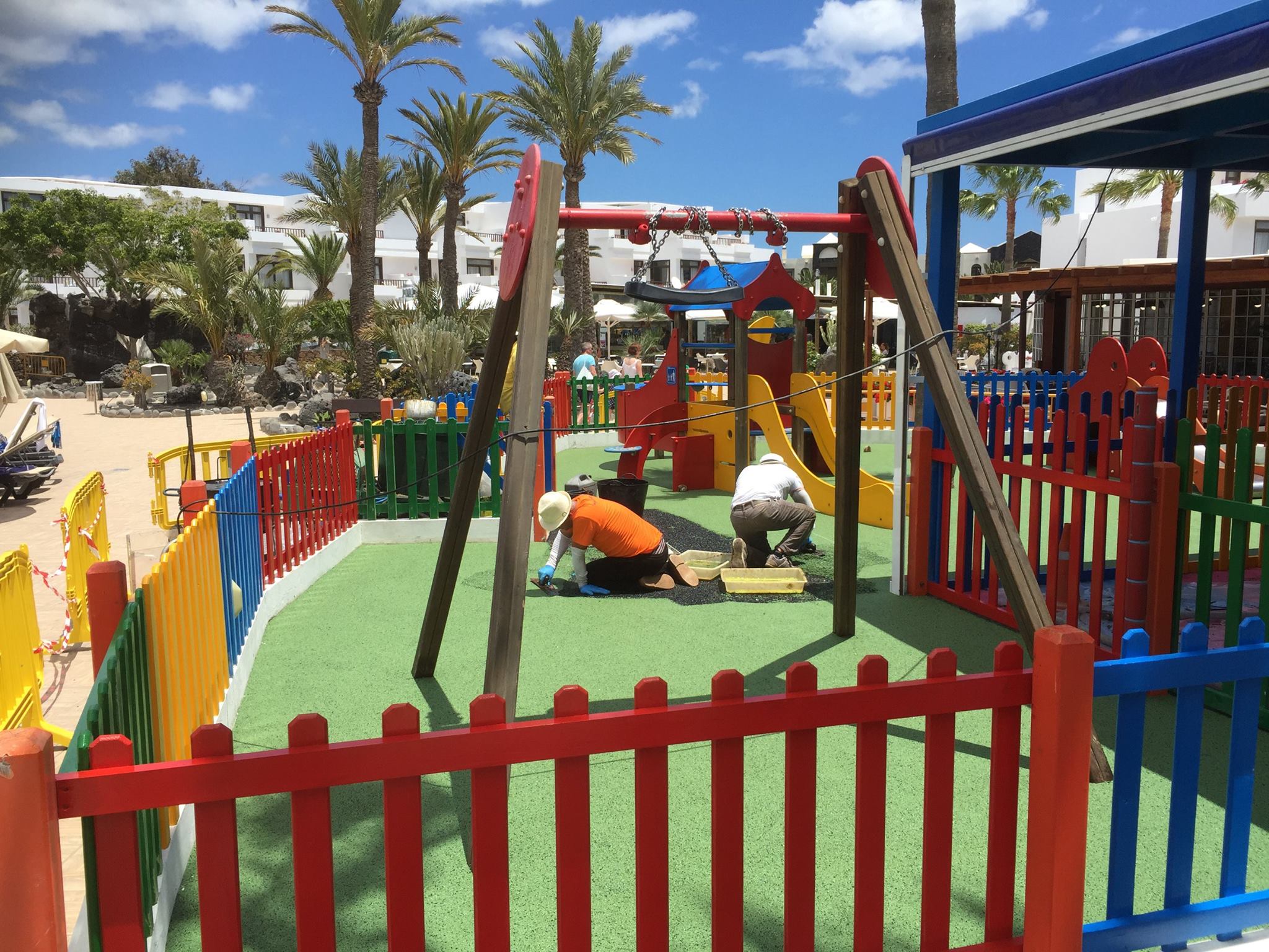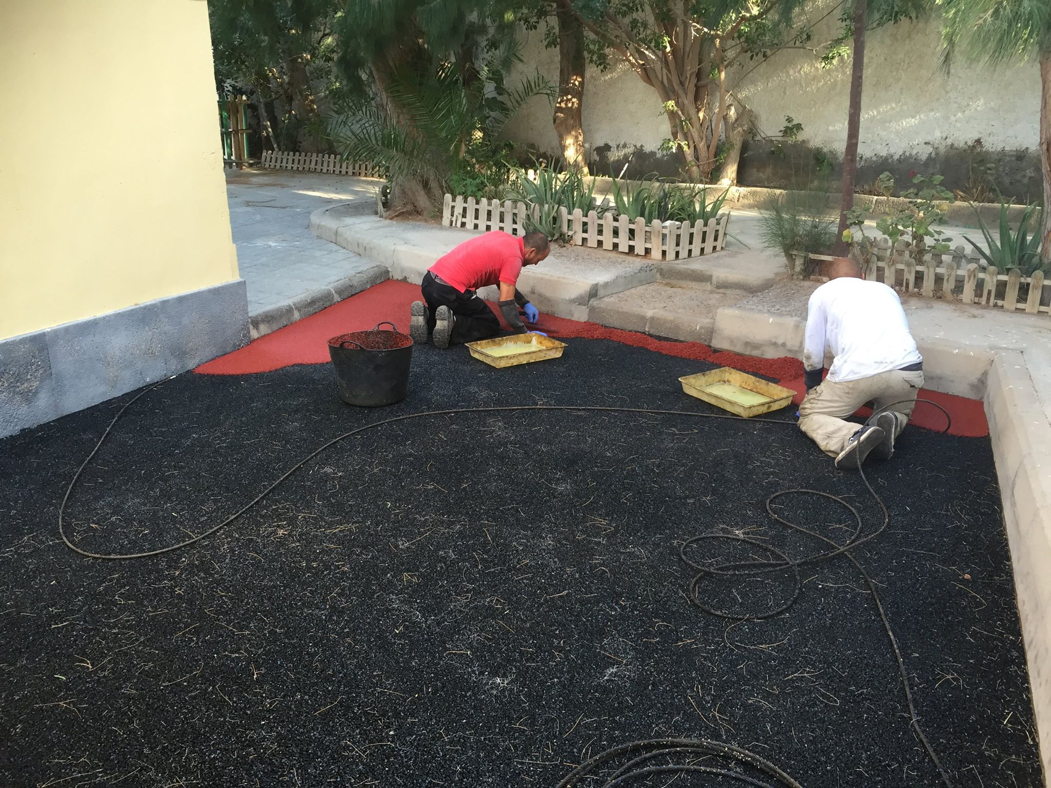 Una de nuestras especialidades es la colocación de pavimento amortiguador tanto en losetas como en pavimento continuo, siempre cumpliendo con la normativa vigente en (UNE-EN 1176-7:2008).
