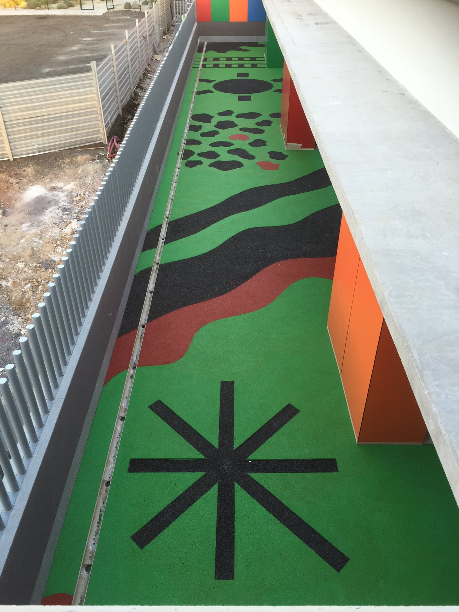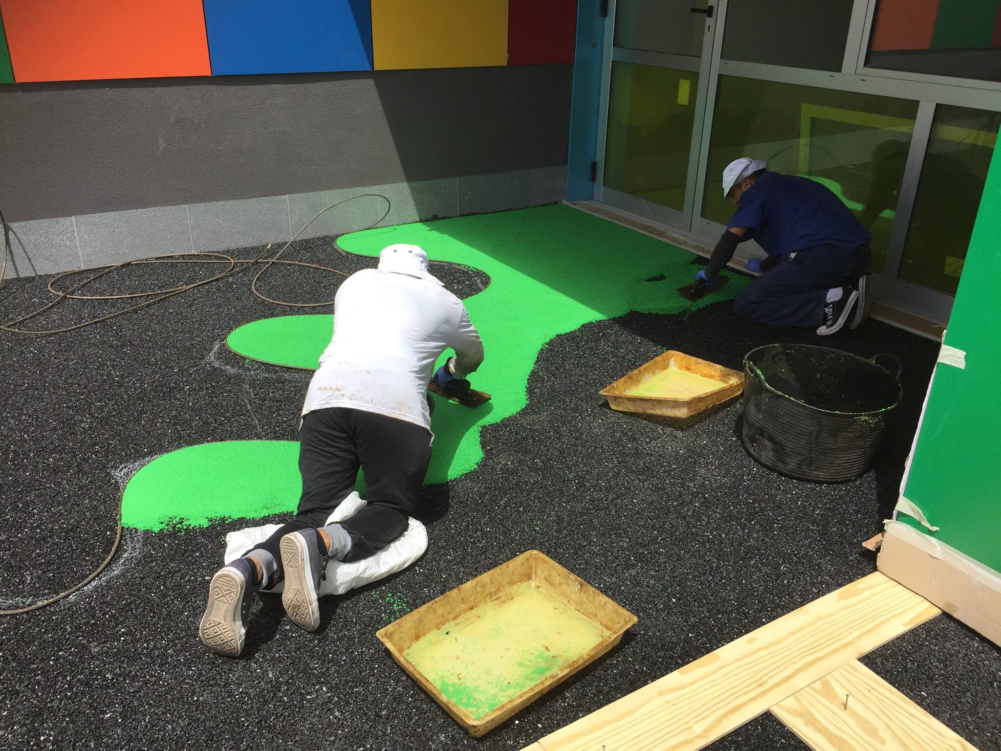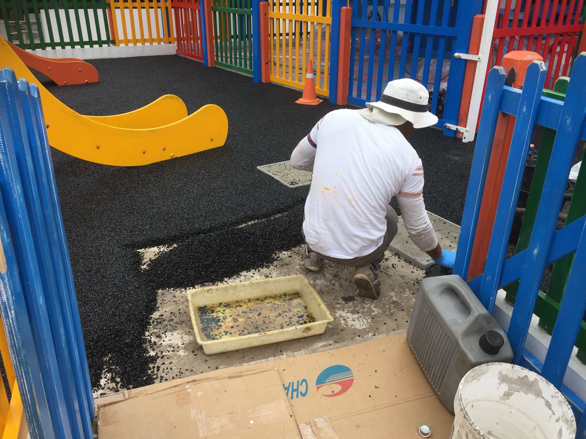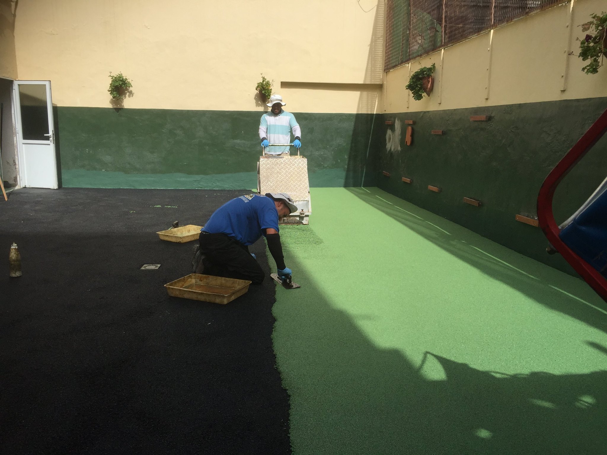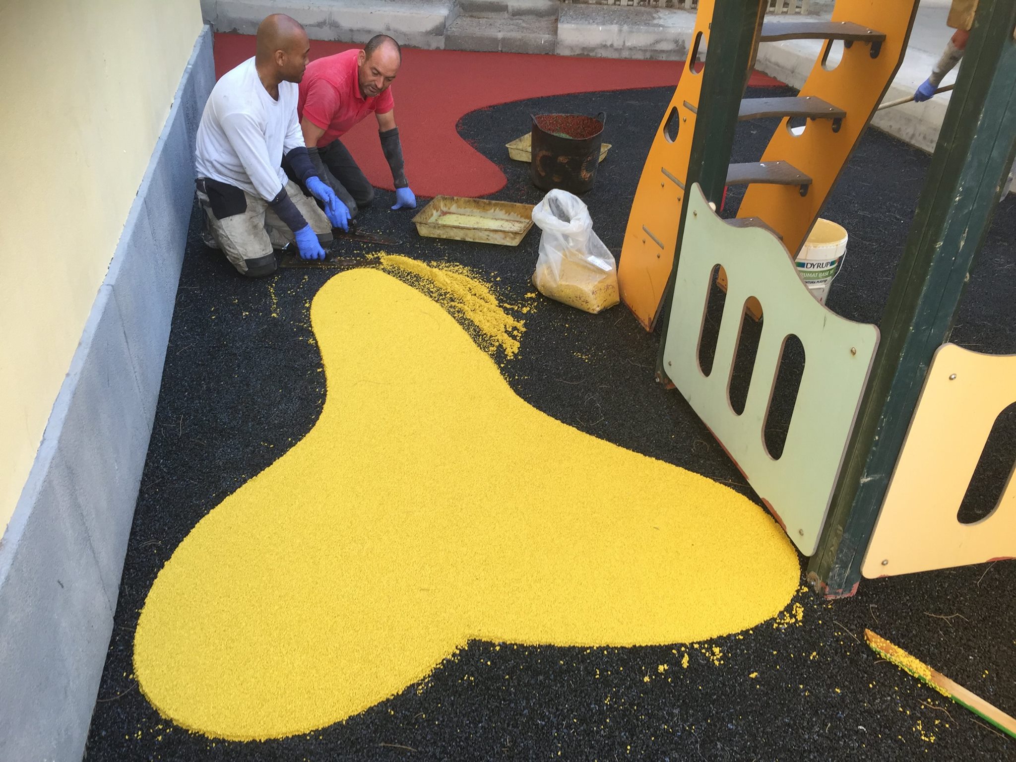 Una de nuestras especialidades es la colocación de pavimento amortiguador tanto en losetas como en pavimento continuo, siempre cumpliendo con la normativa vigente en (UNE-EN 1176-7:2008).